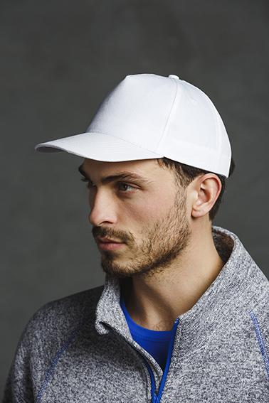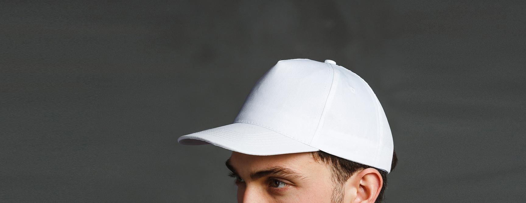 Fasongsydd caps med 5 paneler. Regulerbar velcrolukning.