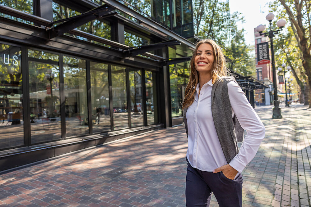 Vår ikoniske Advantage kommer nå også som skjorte i det samme komfortable tri-blend-materialet. Uformelt møter finkledd! Skjorten vil raskt bli din favoritt på jobben, på reisen eller på en middag ute. Kombinasjonen av designelementer fra en klassisk skjorte og det myke tri-blend-stoffet gir et hybridplagg som gjør at du ser bra ut og fungerer hele dagen.