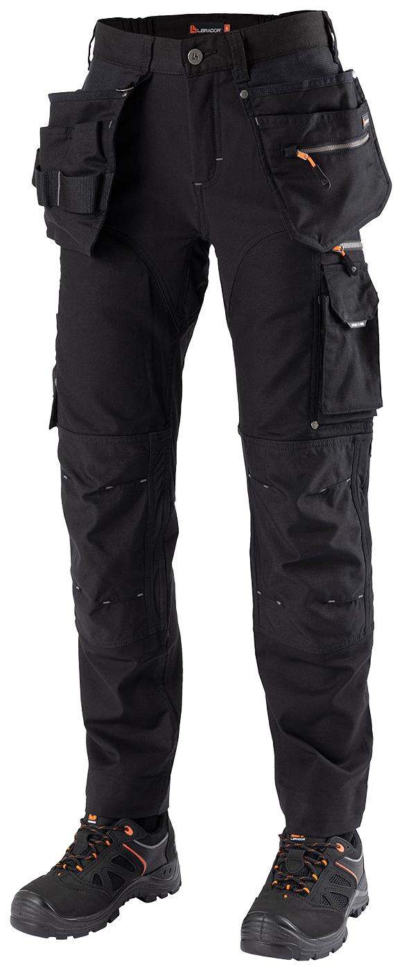 - Smalere passform ved hjelp av stretchpaneler samt stretch i hovedmaterialet gir en kroppsnær bukse med knebeskyttere som holder seg på plass.