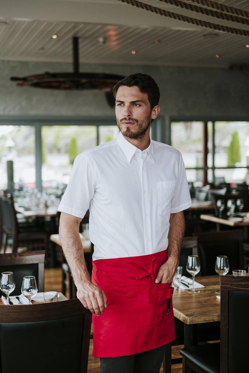Kort slitesterkt forstykke med midtlommer, pennelomme og nøkkelring. 40 x 70 cm.
