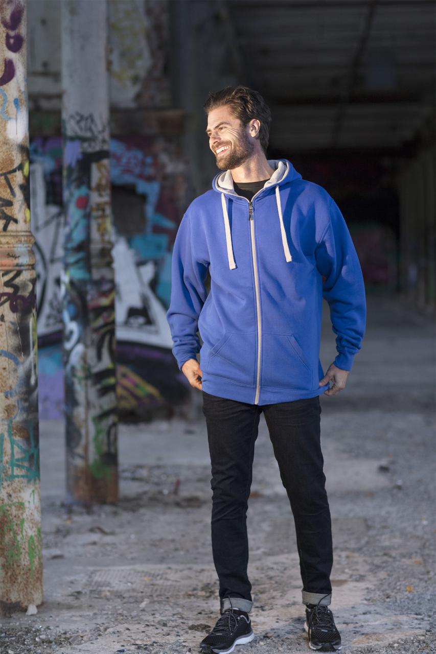 Klassisk bestselger unisex hettejakke. Dobbel jerseystrikket, lycra i alle ribber og flosset innside. Snøring og fôring i hette. Stikklommer med mediaport i front. Matcher 3981 Katherine og 3982 Katherine Raglan.