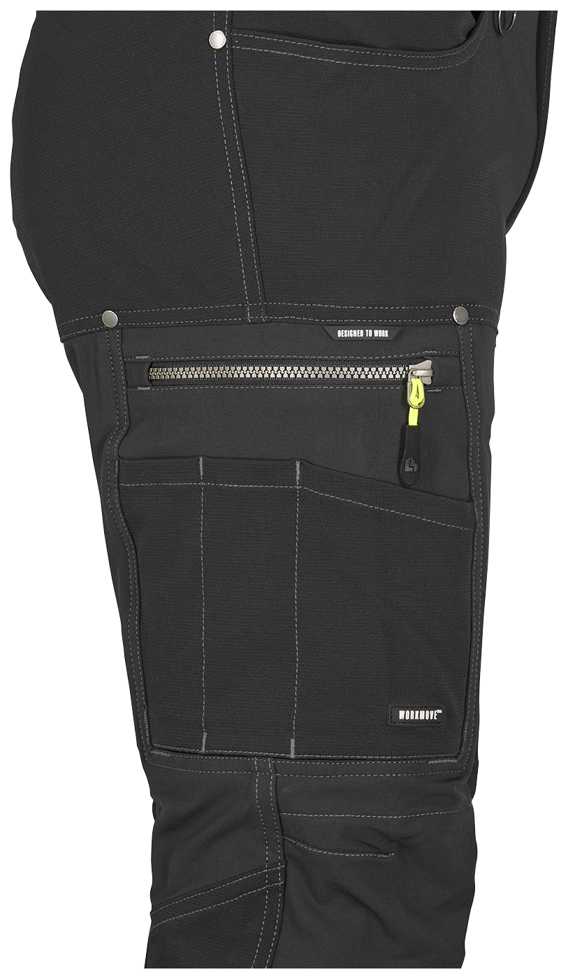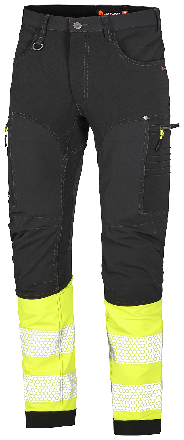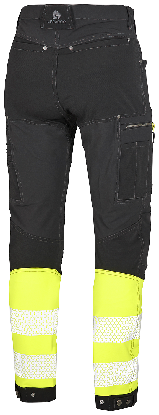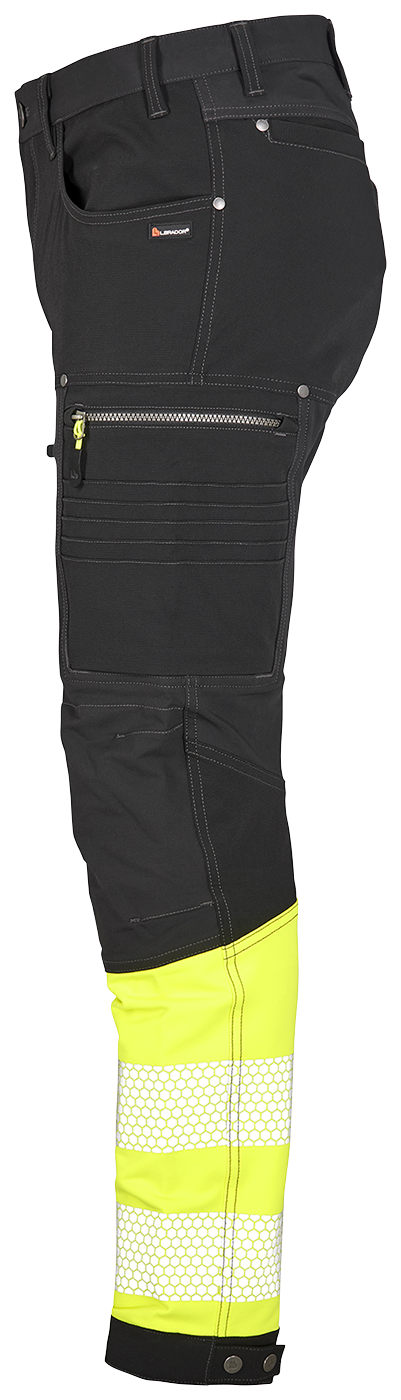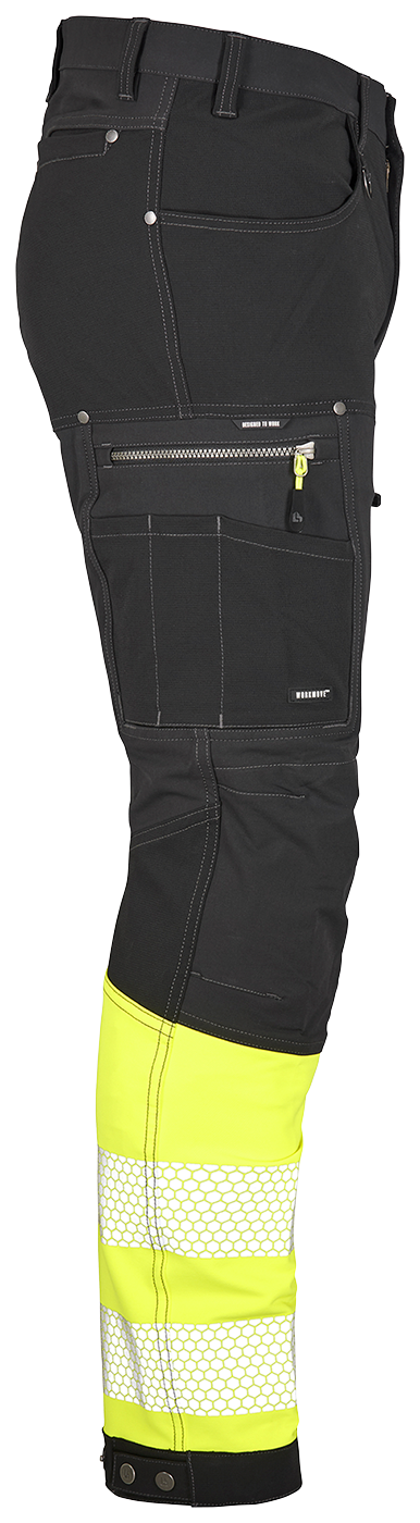 Hi-Vis-sertifisert servicebukse i fullstretch. Cordurastretchpartier på rumpe, i front og i skrittet for ekstra god slitestyrke. Buksen har moderne design og kroppsnær passform og er utformet for å gi optimal komfort gjennom hele arbeidsdagen.