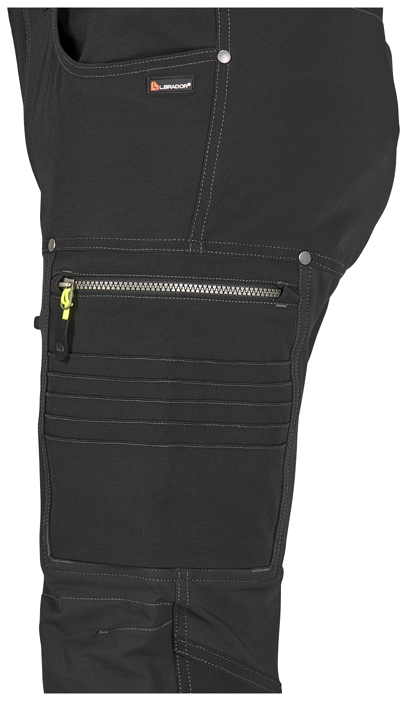 - Beinlommer med glidelås, venstre med innvendig telefonlomme og høyre med ekstra lommer på utsiden.