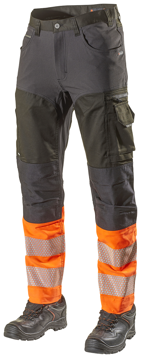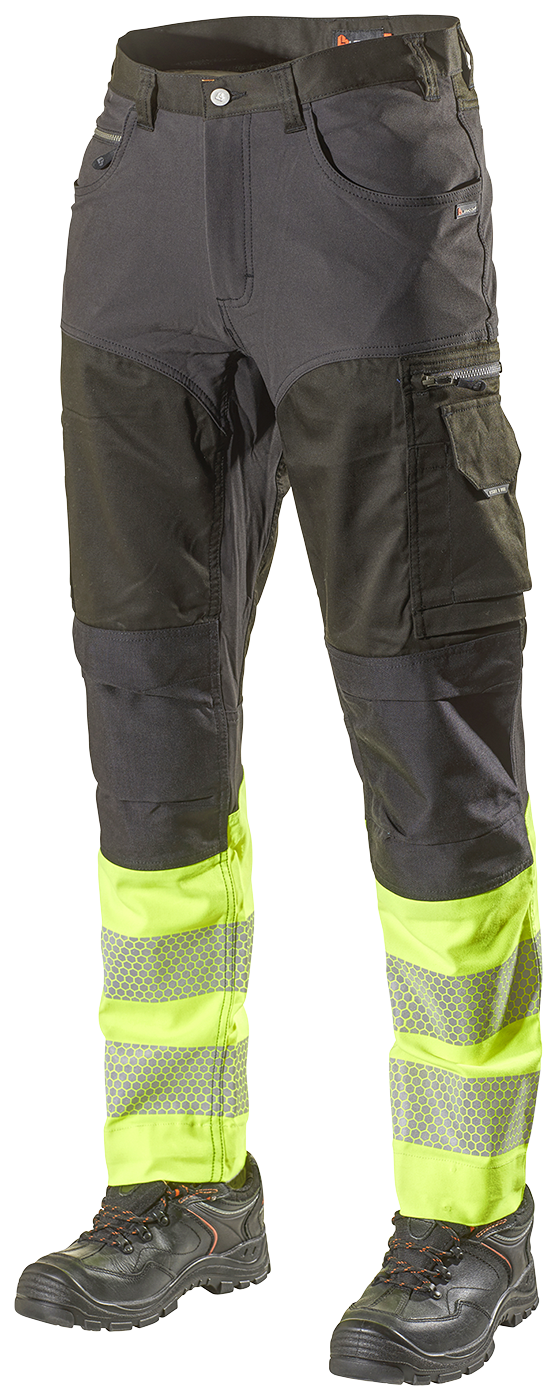 Lettere og luftigere Hi-Vis-sertifisert servicebukse i klasse 1, med stretchpaneler som gjør buksen komfortabel og sval. Buksen er utviklet i nært samarbeid med brukere, og den er egnet for jobb på lager, i industri, service og montering, uten at man gir avkall på smidighet, bevegelsesfrihet eller synlighet.
