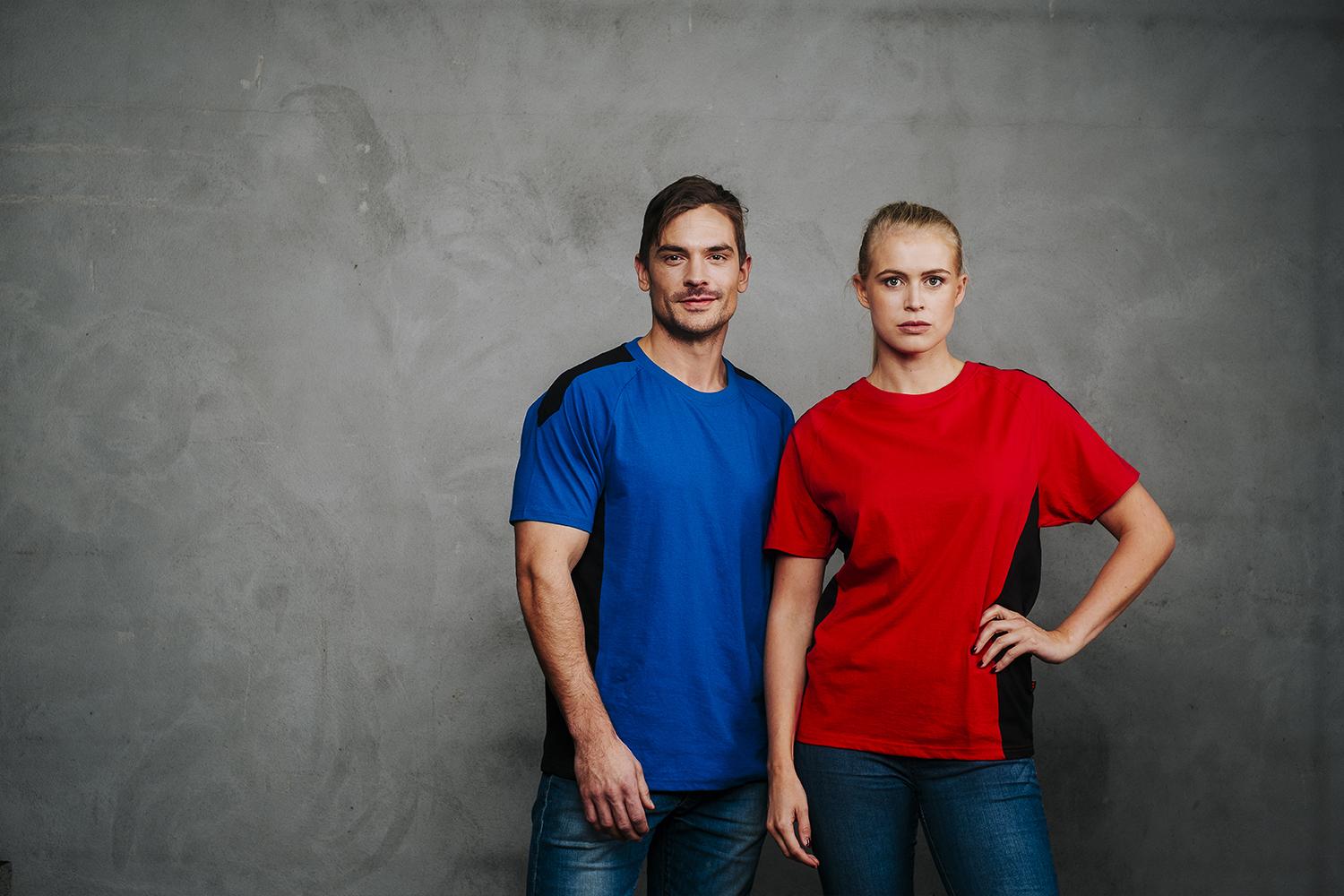 Ekstremt slitesterk tofarget unisex PRO t-skjorte. Klassisk snitt. Tåler hard industriell vask og tørk. (farget: 60 grader, hvit: 85 grader)