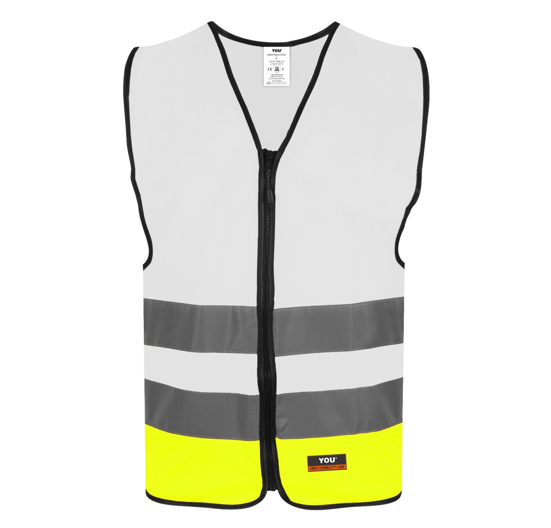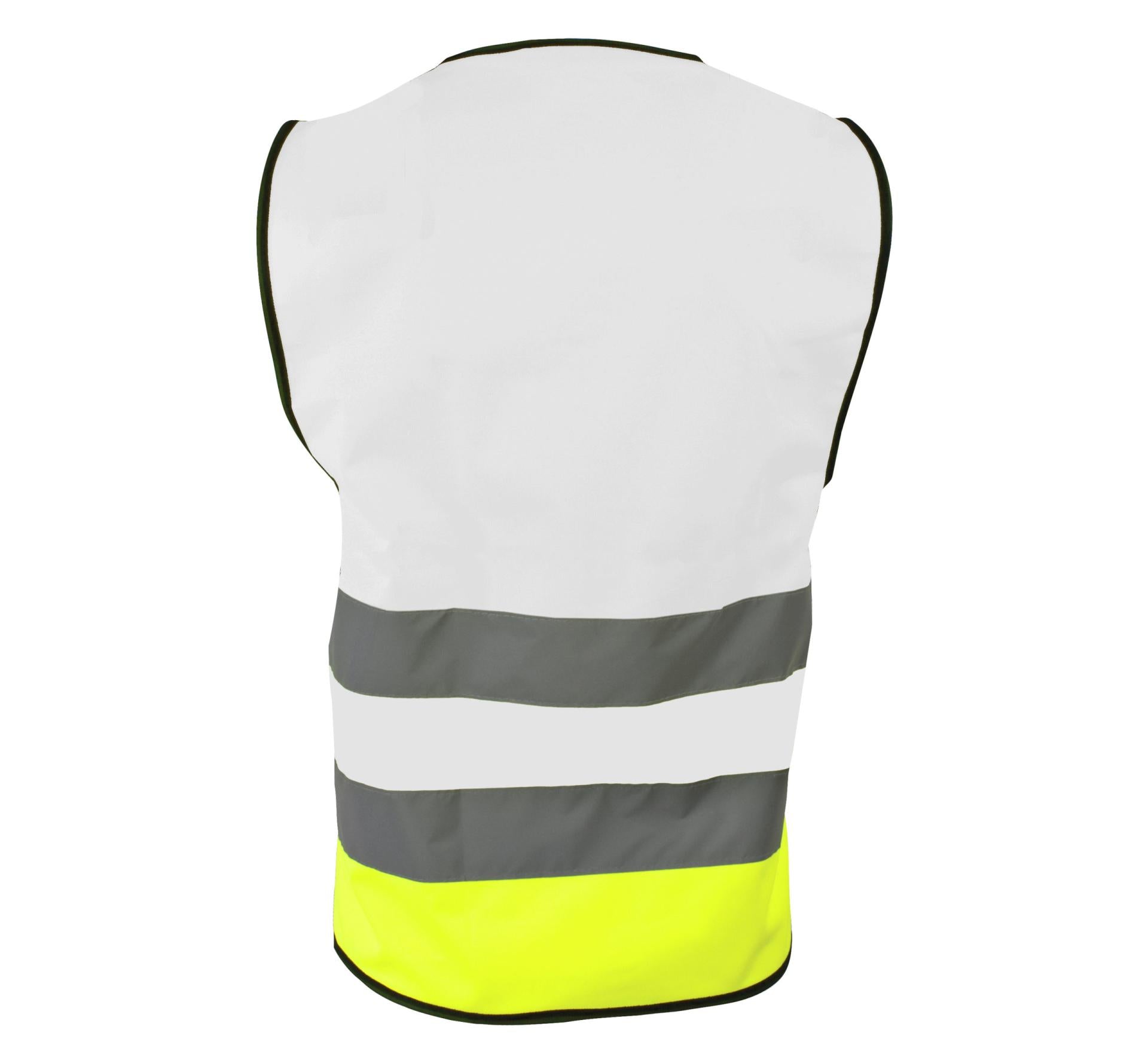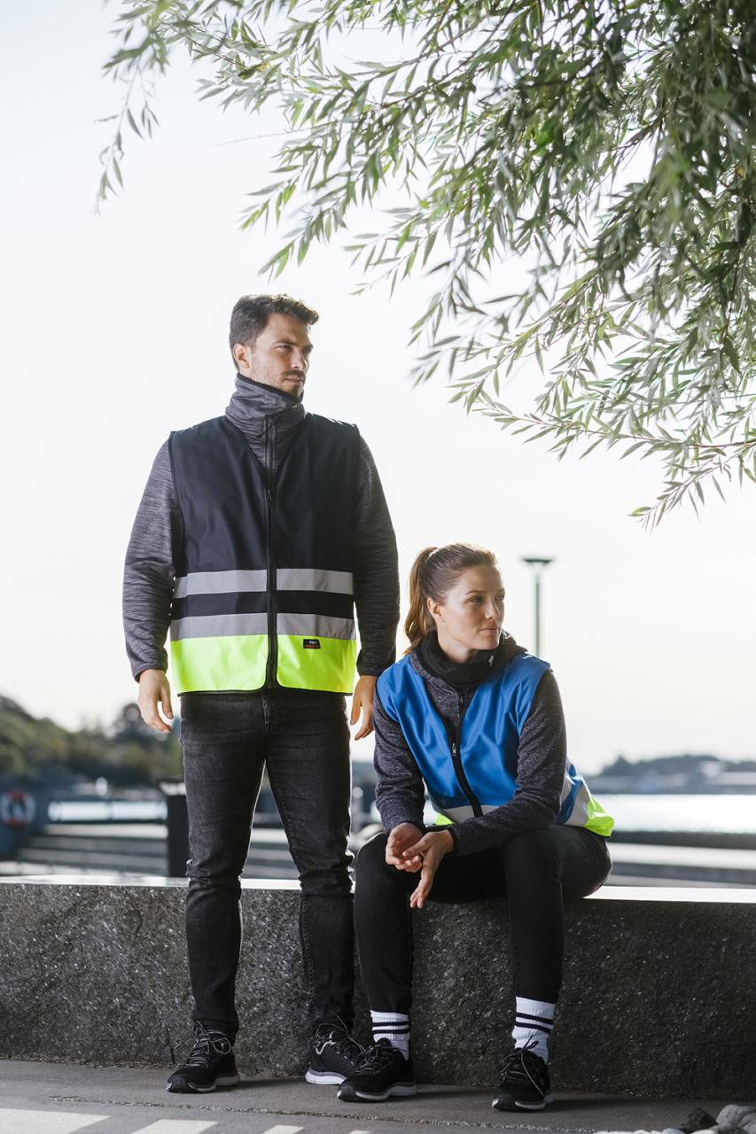 Tofarget unisex refleksvest til fritid- og arbeidsbruk. Påsydde reflekser rundt midjen. Glidelås i front.