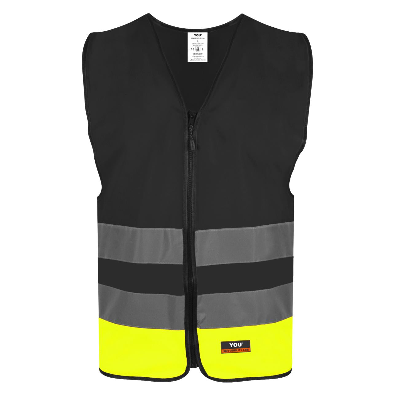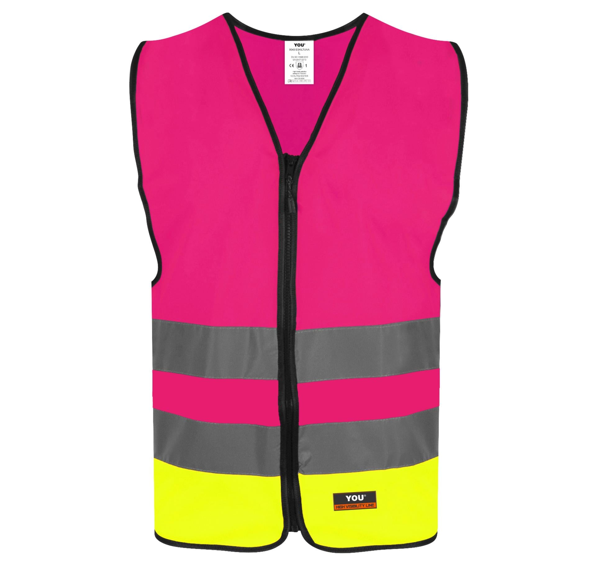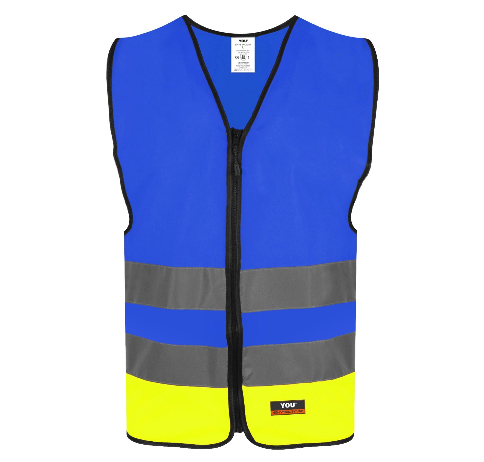 Tofarget unisex refleksvest til fritid- og arbeidsbruk. Påsydde reflekser rundt midjen. Glidelås i front.
