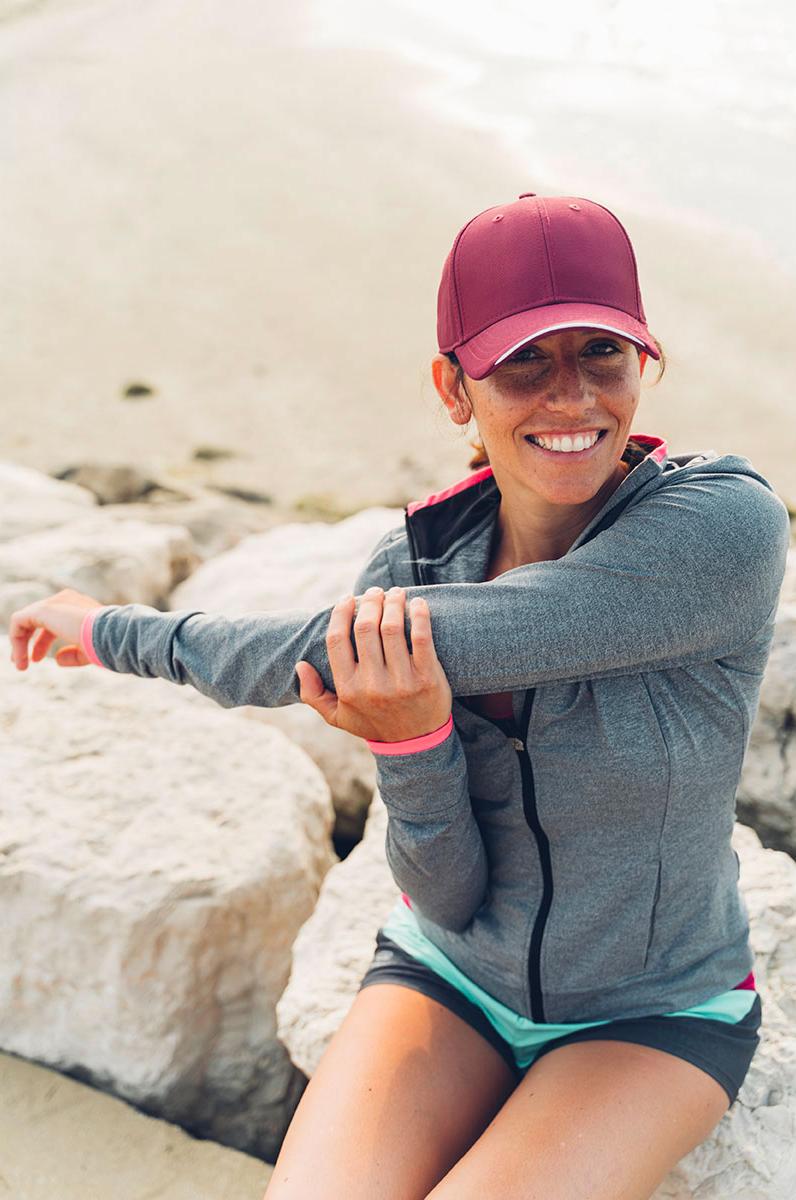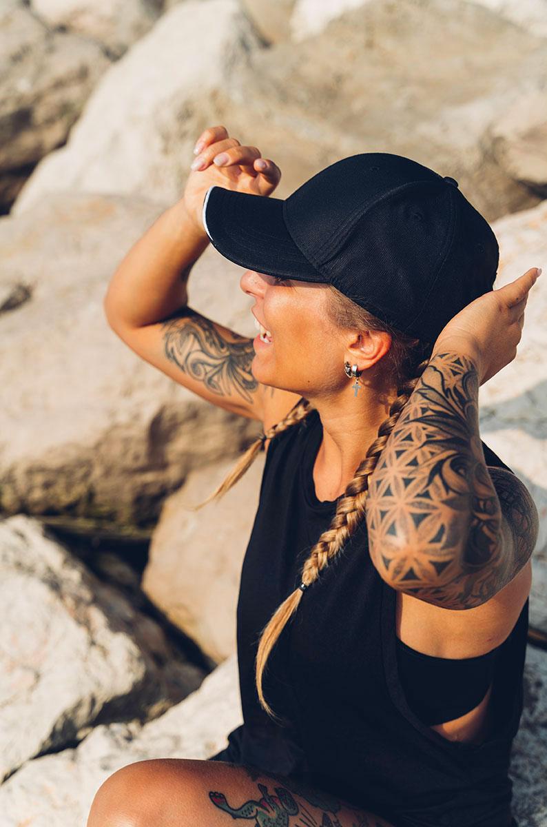 Cap med kontrastpiping på brem. 6 paneler og buet brem. Medium profil. Velcrolukning.