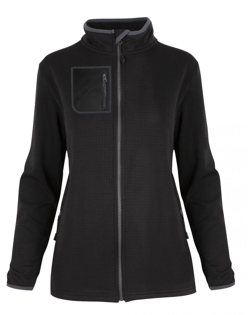 Strikket base layer jakke med imponerende komfort! Transporterer fuktighet og holder deg varm og tørr. Folgefonna er produsert med et spesielt rutenett som har enestående egenskaper for isolering, pusteevne og ventilasjon. Elastiske bånd i hals og mansjetter. Regulerbar linning.