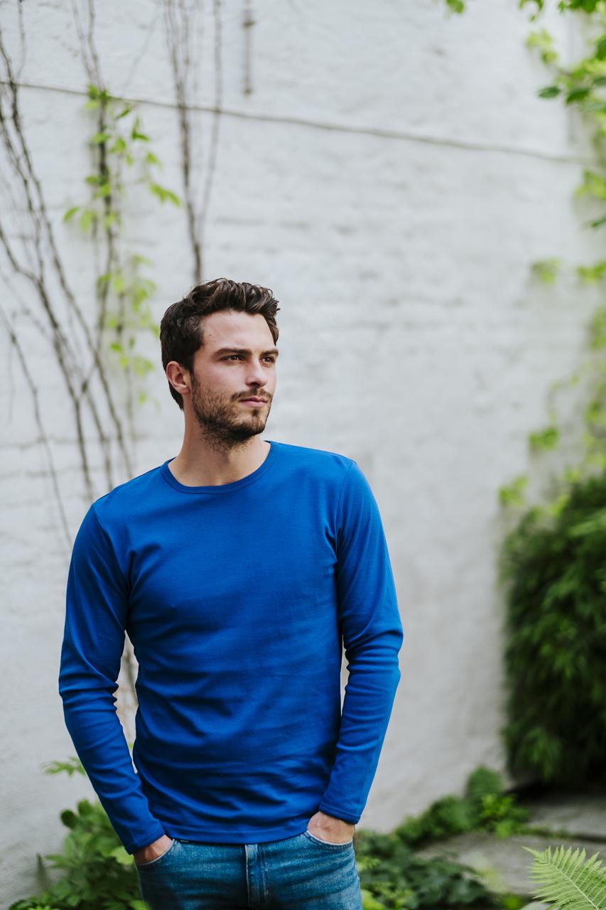 Fashion t-shirt med lange ermer til herre. Forhåndskrympet. Kroppsnær fasong.