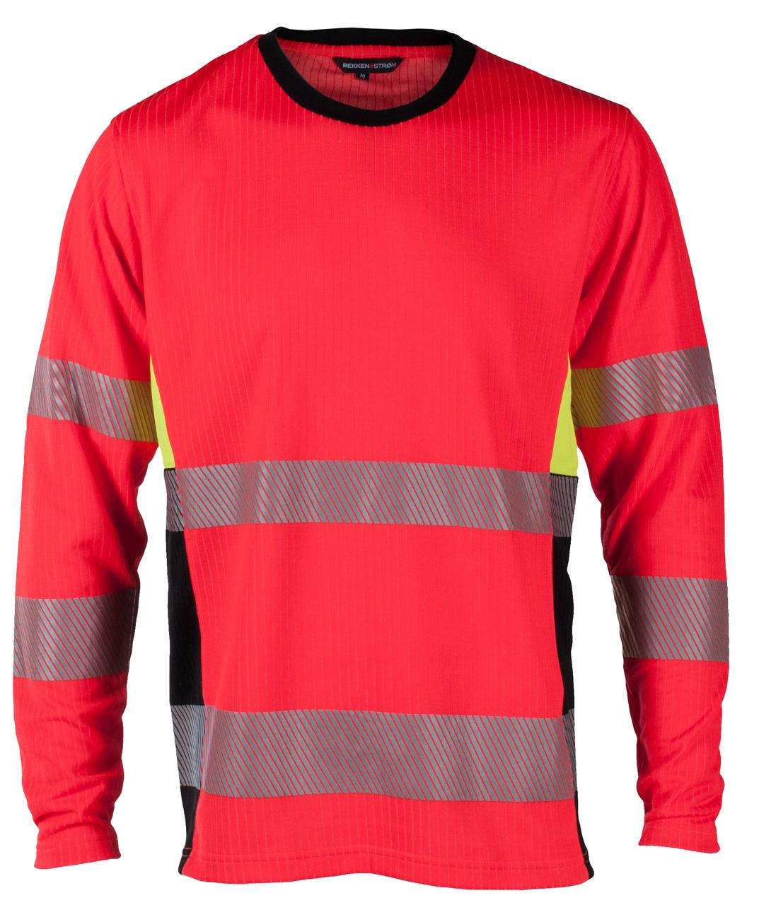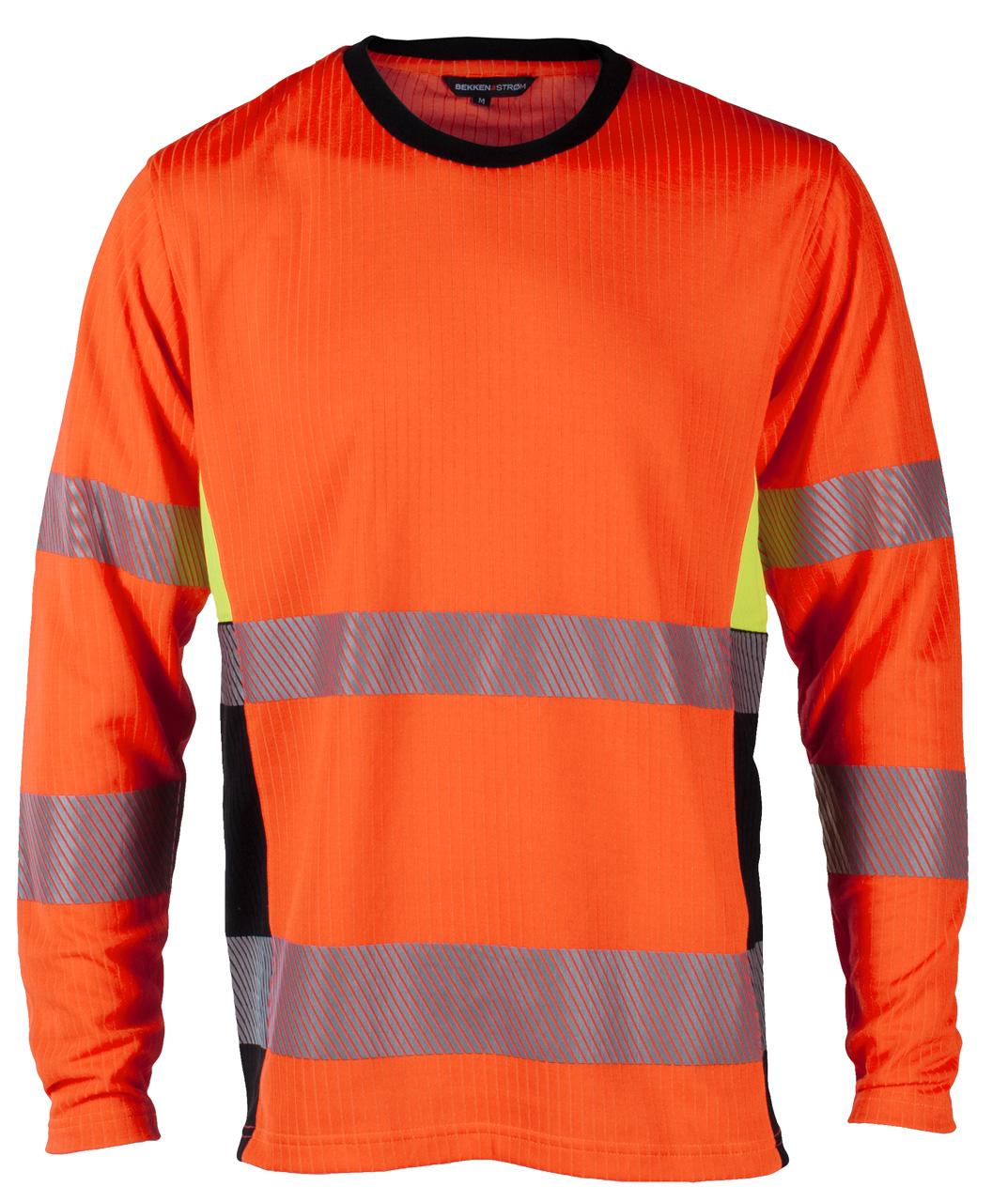 Fluoriserende genser med refleks på mage og ermer. EN 20471 klasse 3.