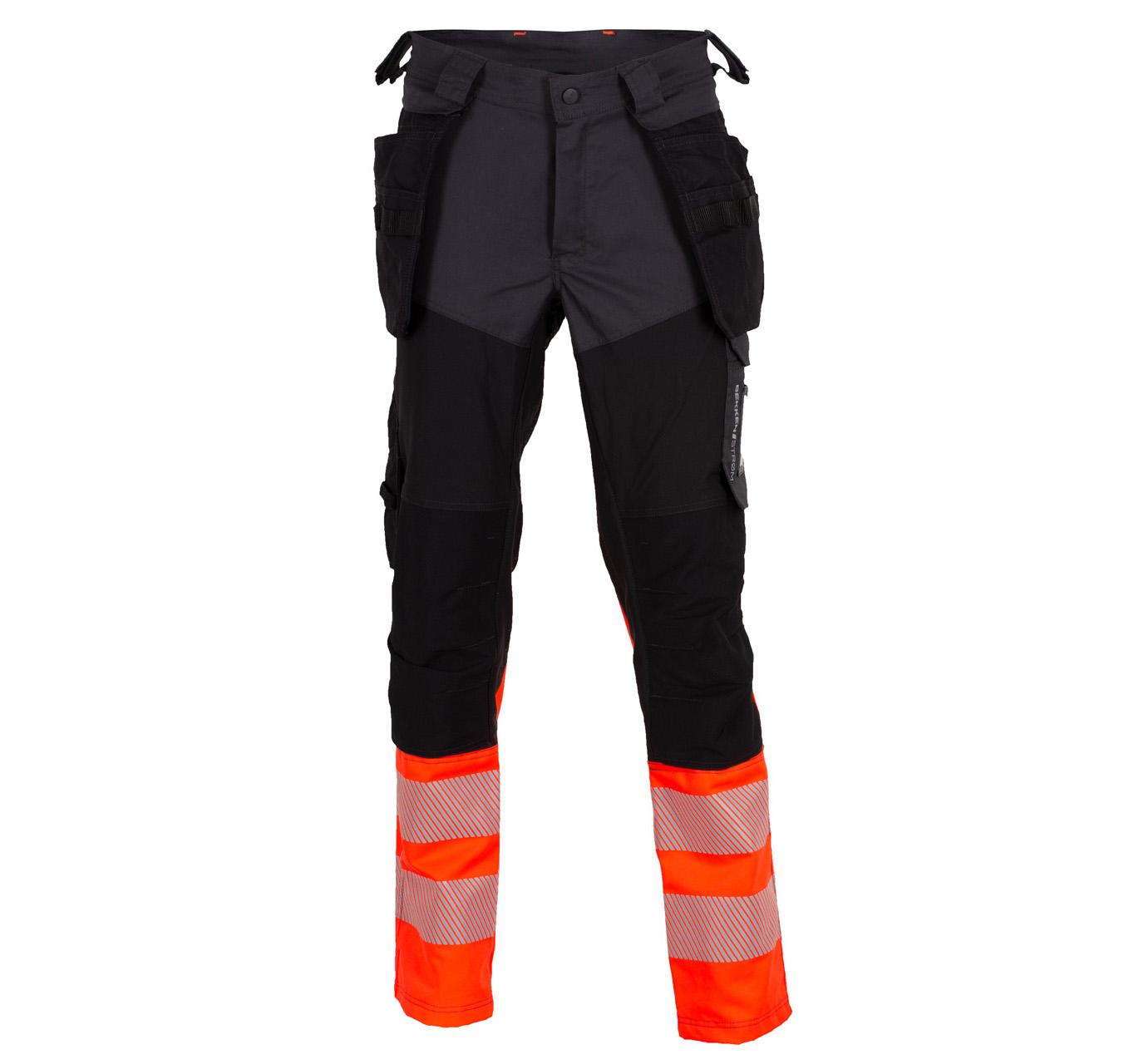 Fluoriserende bukse med paneler i 4-veis stretch som gjør buksa utrolig behagelig i bruk. Buksa har stikklommer i front, avtagbare hengelommer, baklommer, dobbel tommestokklomme plassert over sidesøm på buksa. Lårlomme venstre side med mobillomme, knelommer og feste for hammerholder.