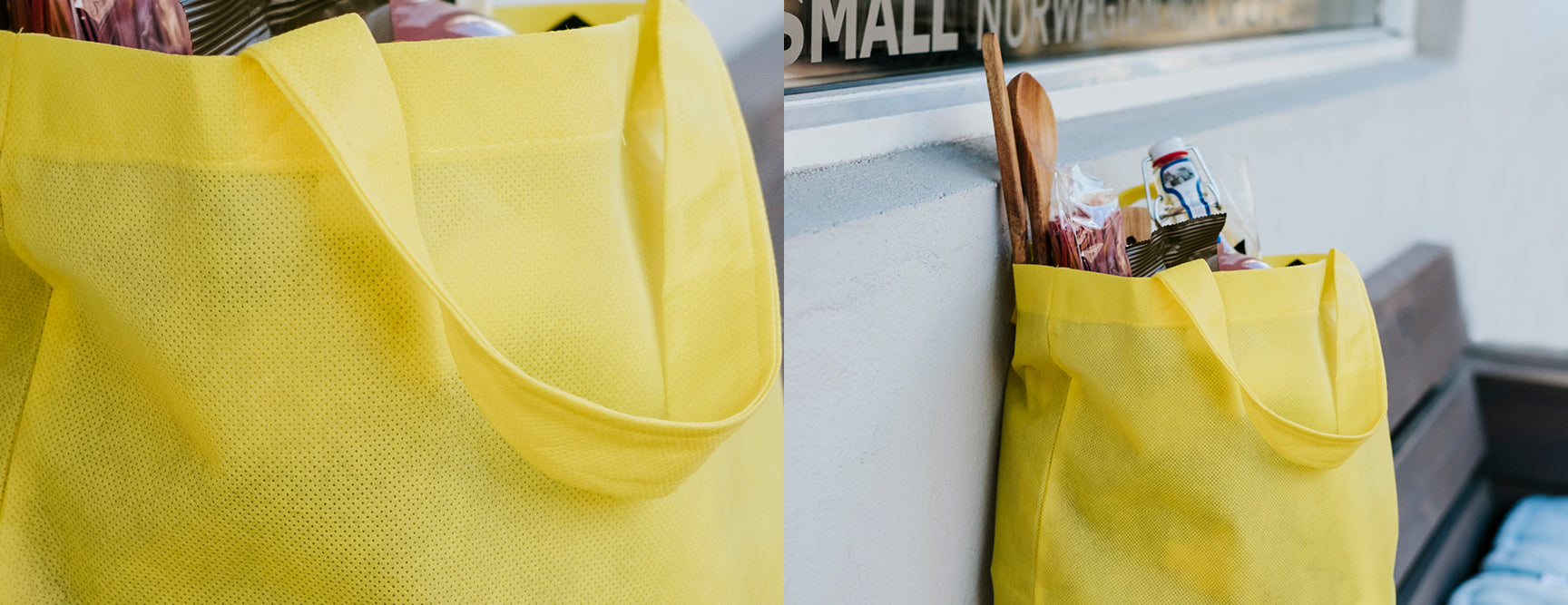 Non woven handlenett med kort hank. Størrelse: 38 x 42 cm. Hank: 35 cm.