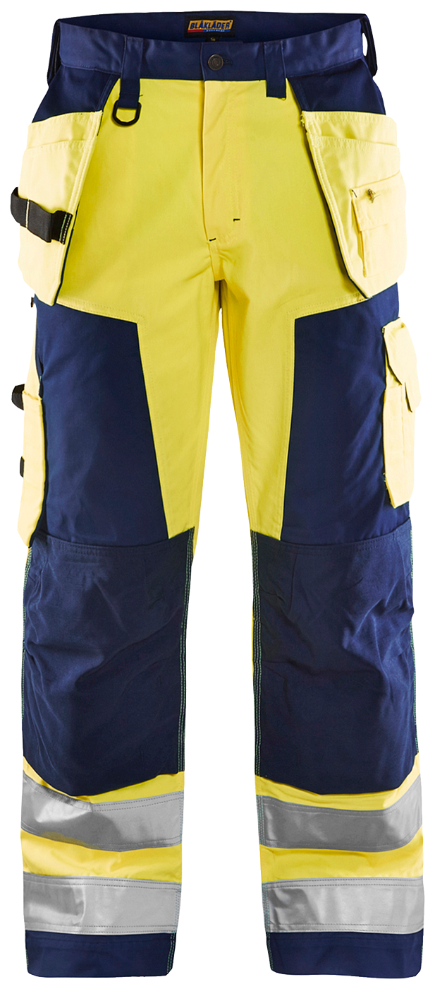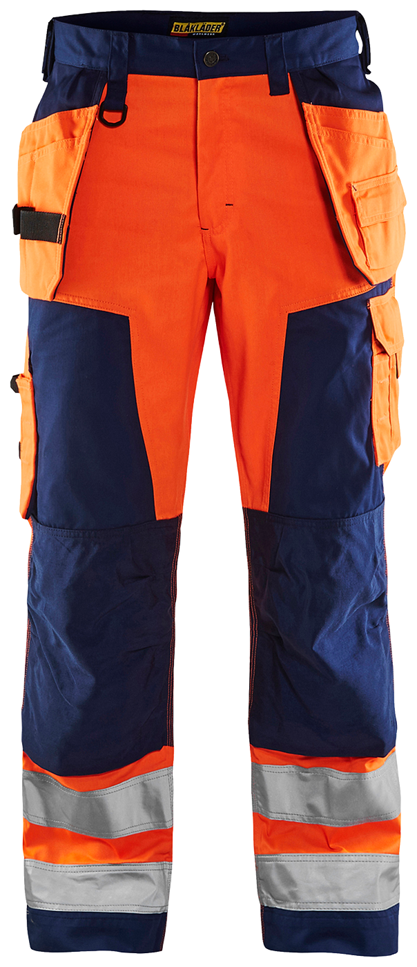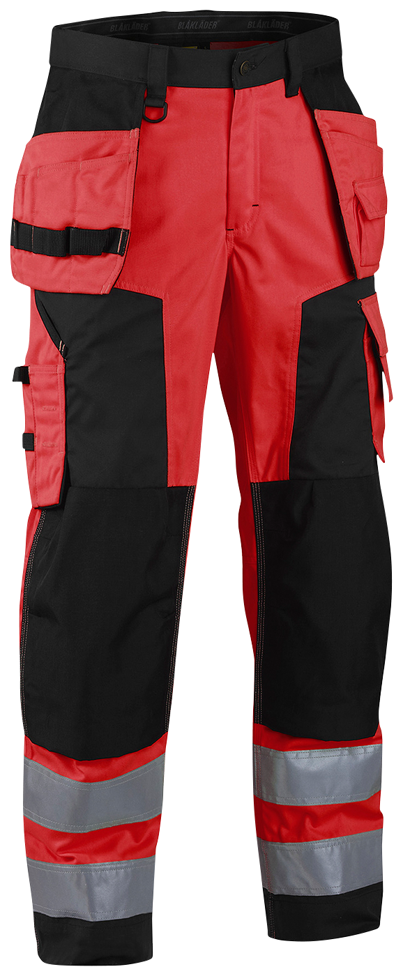 To vinklede, hengende spikerlommer som er forsterket med flere rom og ekstra bredde. Skråstilte lommer under spikerlommer. To forsterkede baklommer med belg, en med klaff. Hammerholder på begge sider. Hemper med borrelås i sidene for hammerholdere (art.nr. 4020 - kjøpes separat). Mobillomme. Cordura-forsterkede knebeskyttelseslommer. Forsterket tommestokklomme med blyantlomme og knivholder. Lårlomme med blyantlomme og telefonlomme. ID-kortlomme. C-størrelser kan forlenges til C100 størrelser. 65 mm reflekser.