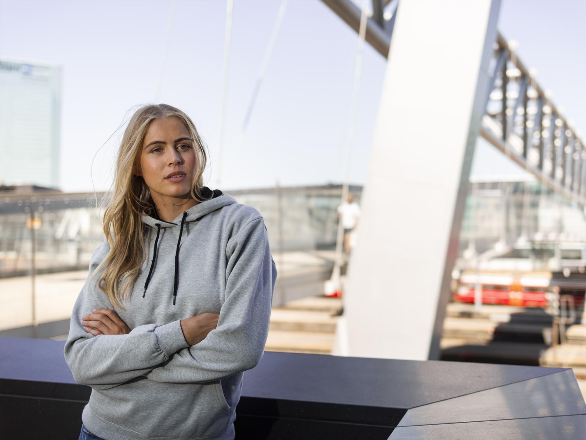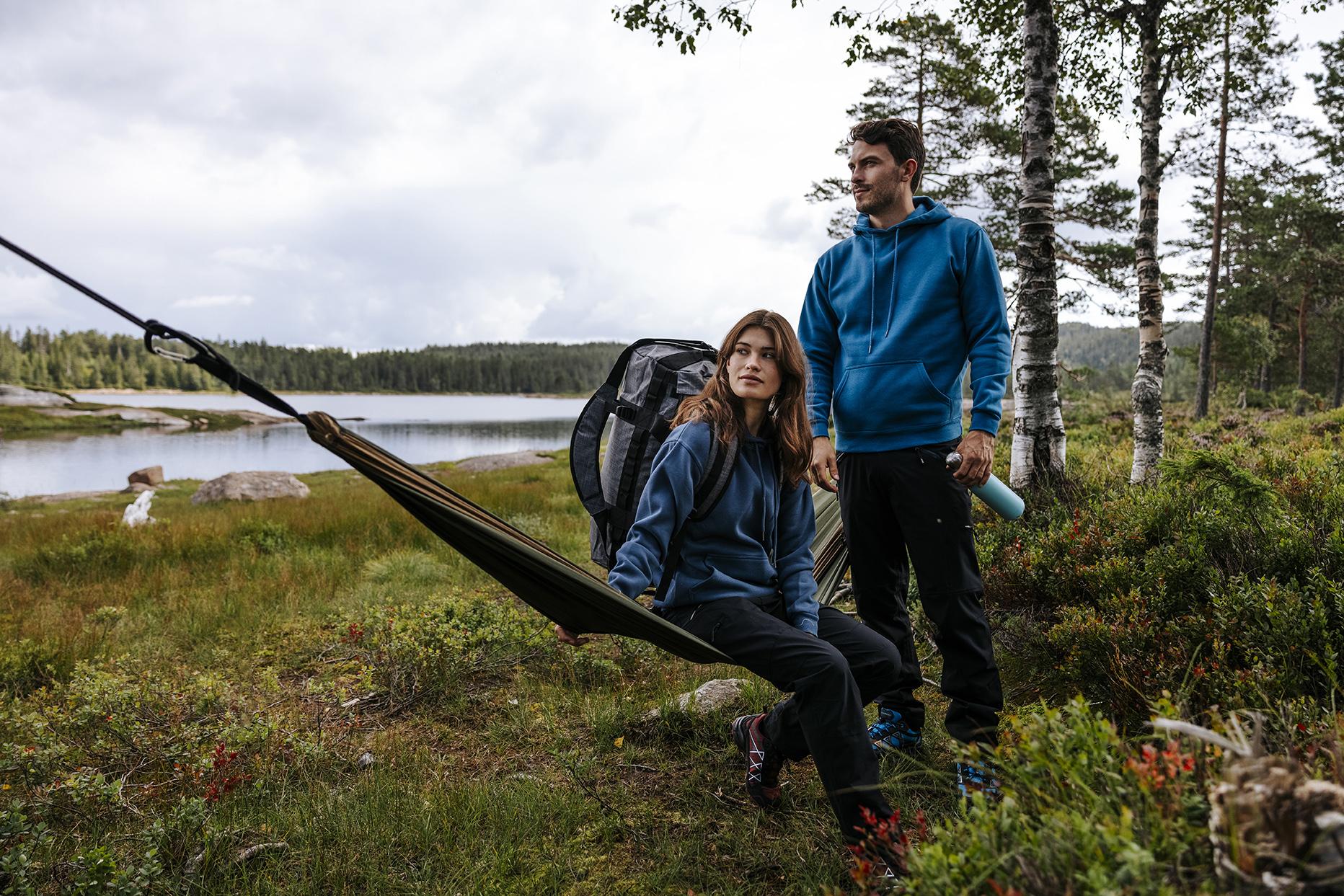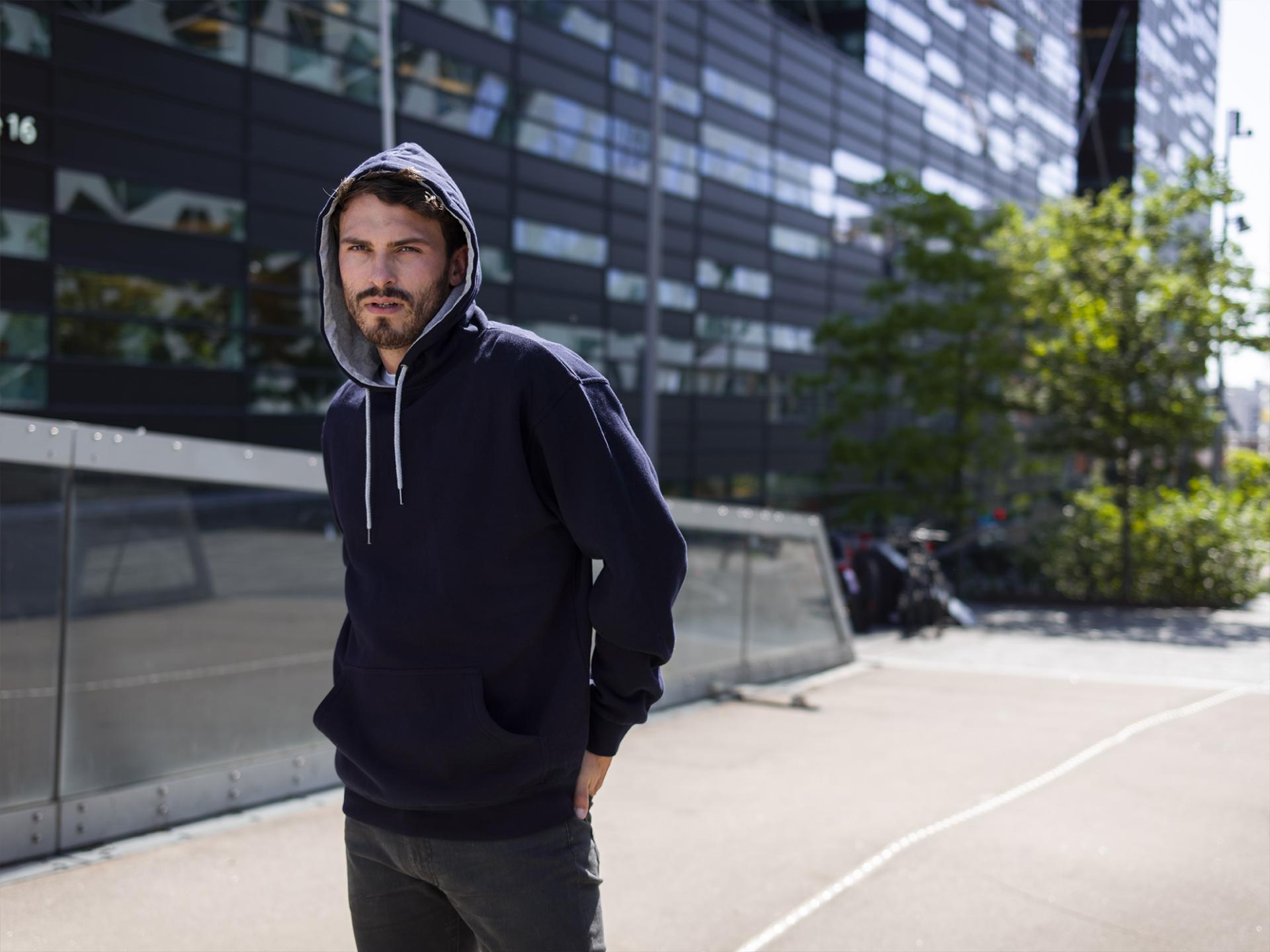 Unisex bestselger hettegenser. Dobbel jerseystrikket, flosset innside, forsterkede sømmer og lycra i alle ribber. Dobbel hette med snøring. Stikklomme med mediaport i front. Denne populære hettegenseren finnes også i raglan-design 3852 Harlem Raglan.