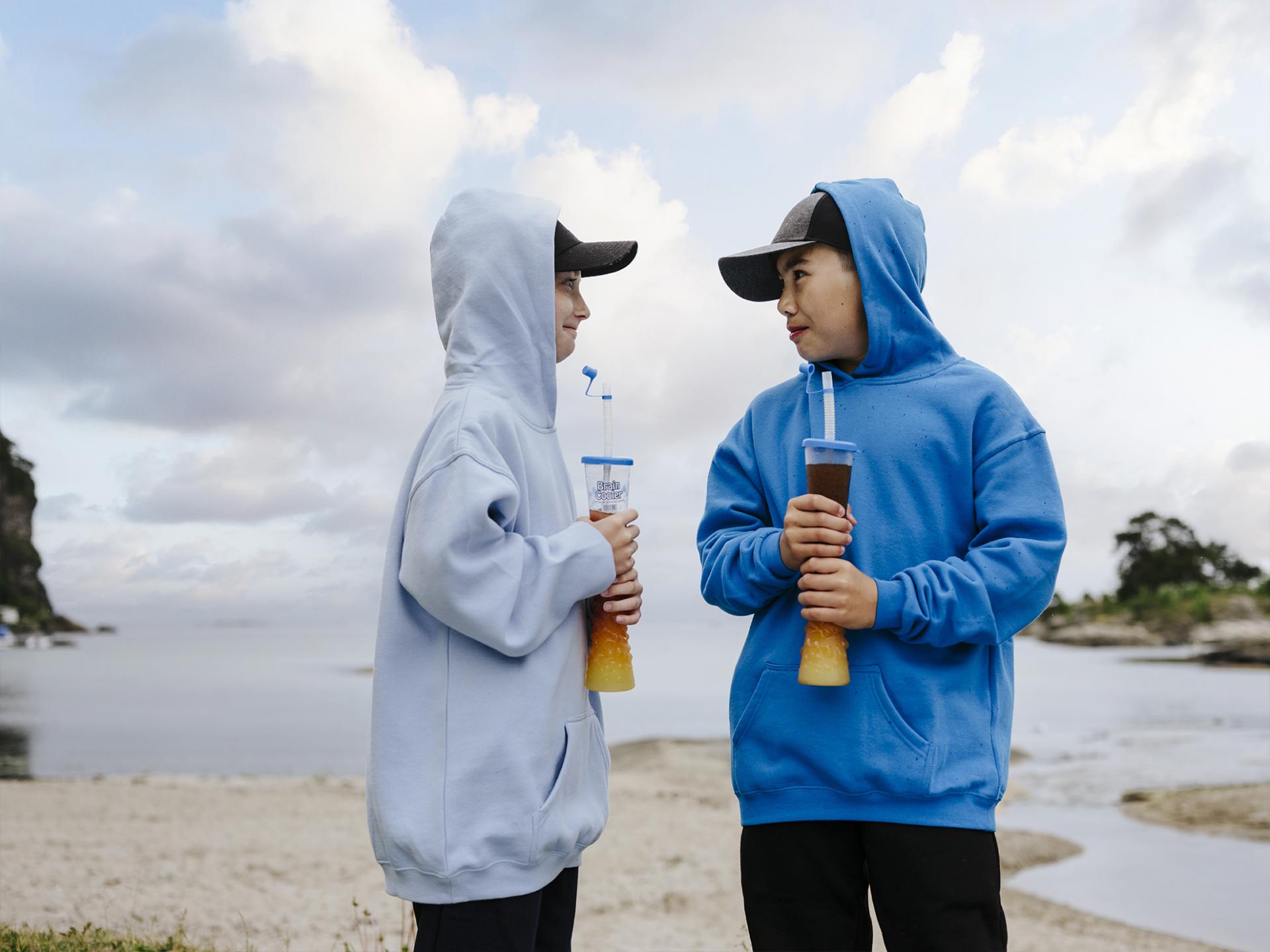 Alle størrelser leveres uten stropper i hetten.