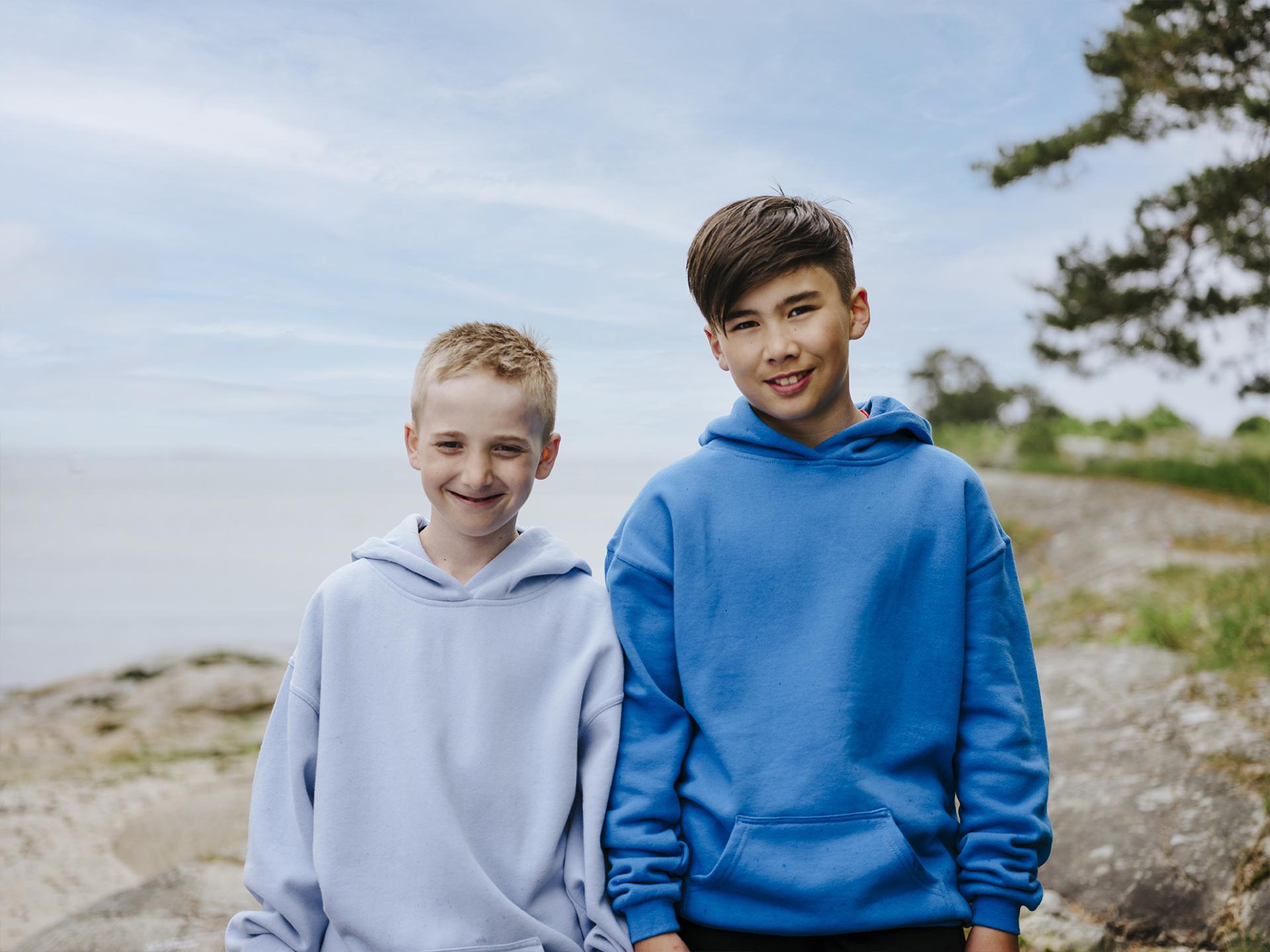 Myk og behagelig hettegenser. Dobbel jerseystrikket, flosset innside, forsterkede sømmer og lycra i alle ribber. Stikklomme i front.