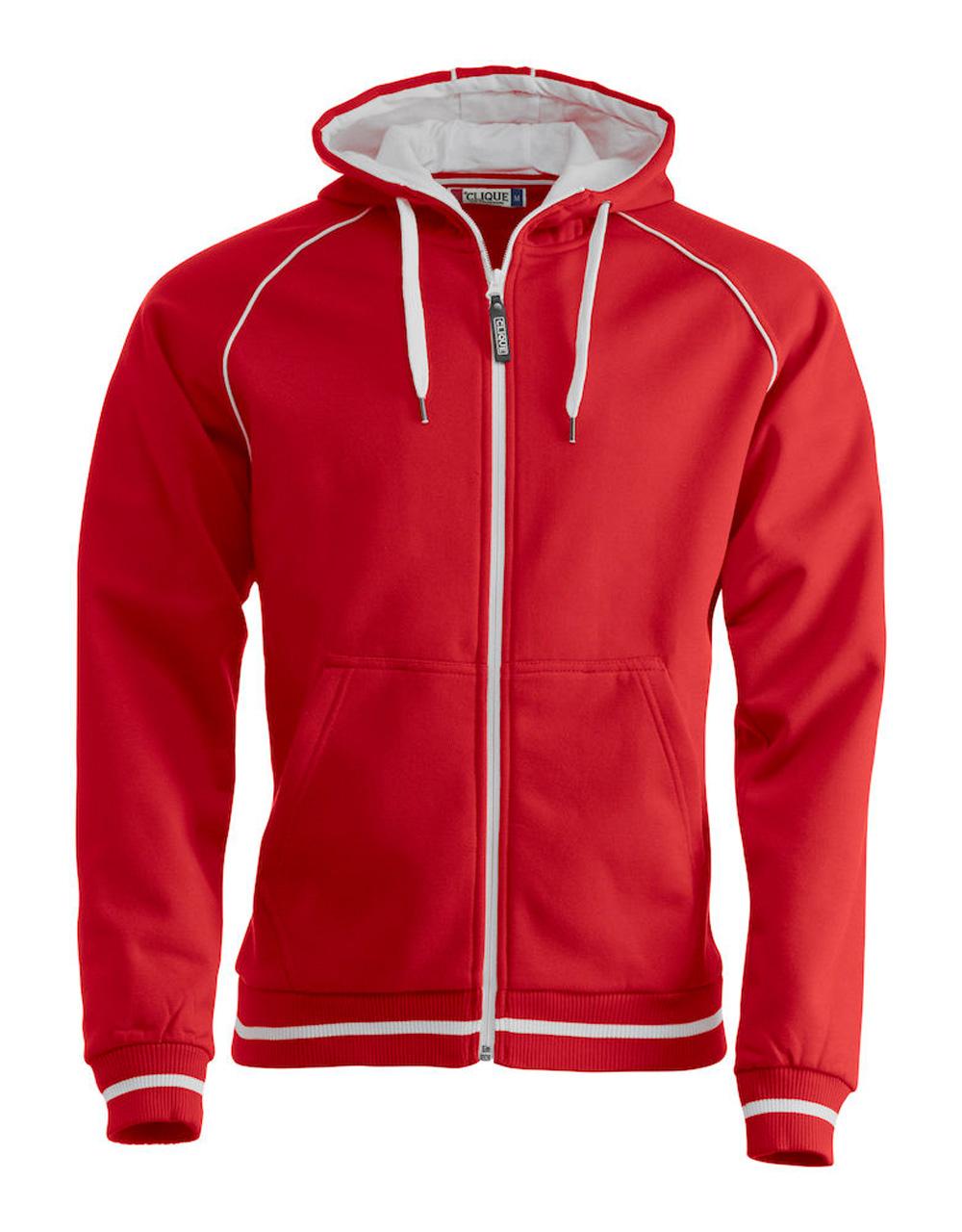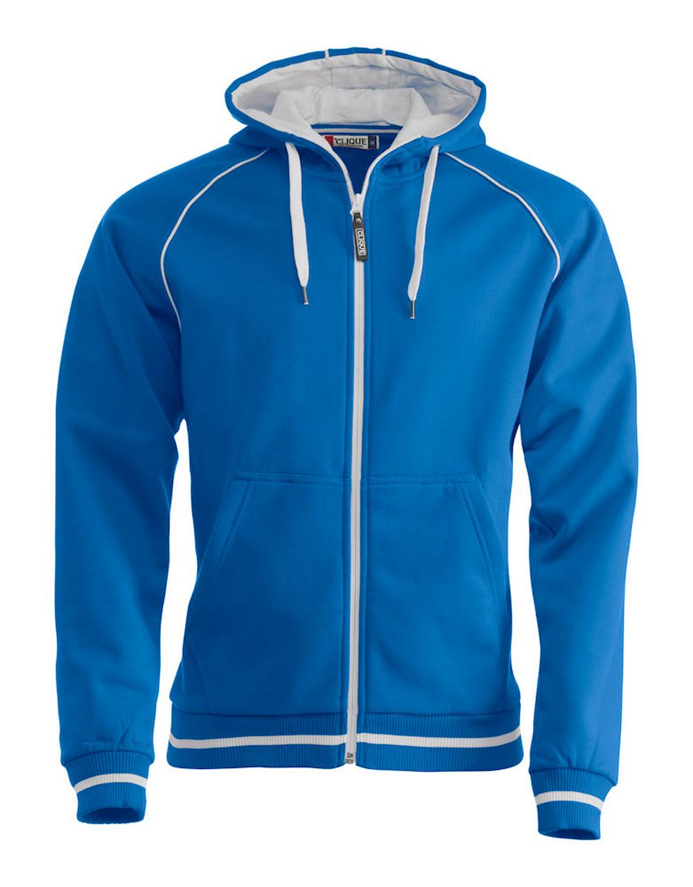 Herremodell med børstet innside og strukturstrikk på utsiden. Kontrastfarge på innside hette, piping, stripe på ribb og glidelås i front.