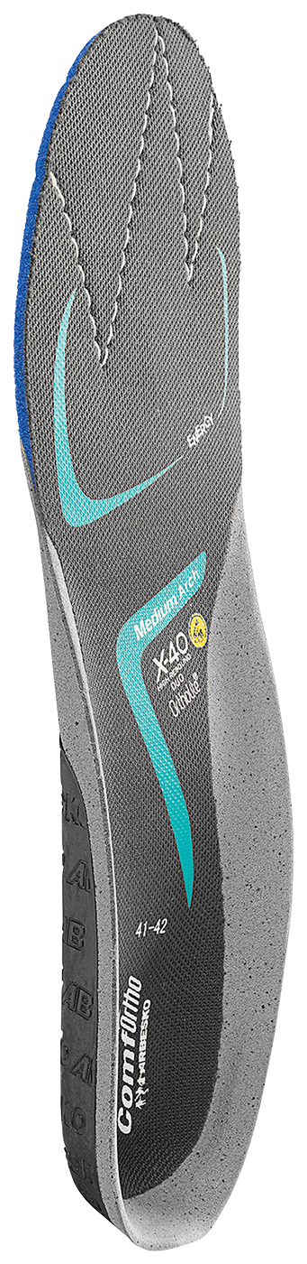 - Oppbygd av tilpassede hardhetsgrader som gir foten maksimalt med støtte og komfort.
