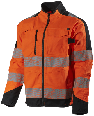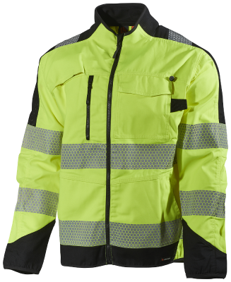 Hivis-sertifisert arbeidsjakke med god slitestyrke, av vann- og smussavvisende materiale.