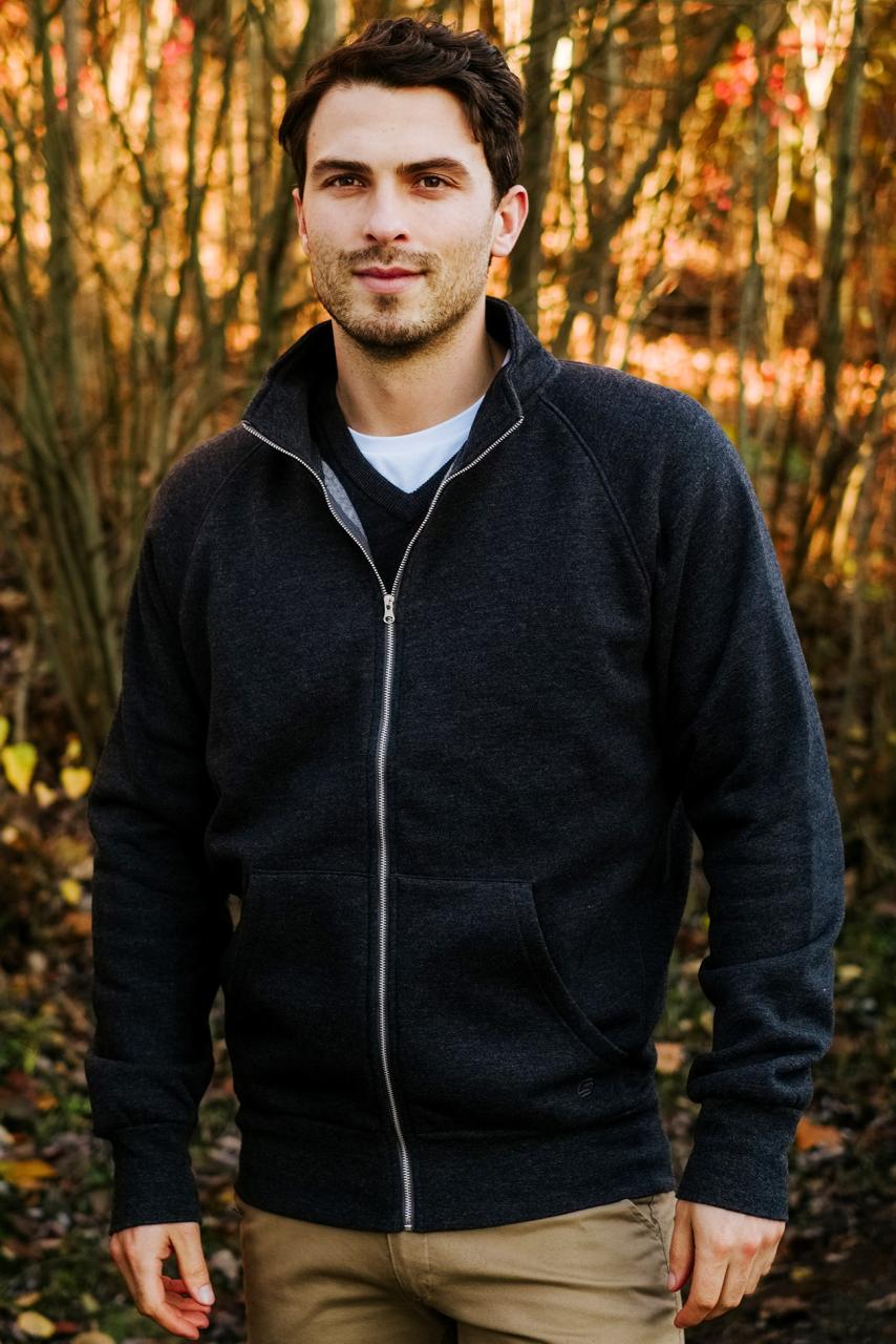 Klassisk unisex collegejakke. Lycra i alle ribber og flosset innside. Kengurulomme i front. YKK metallglidelås.