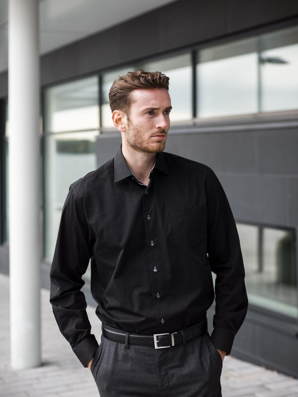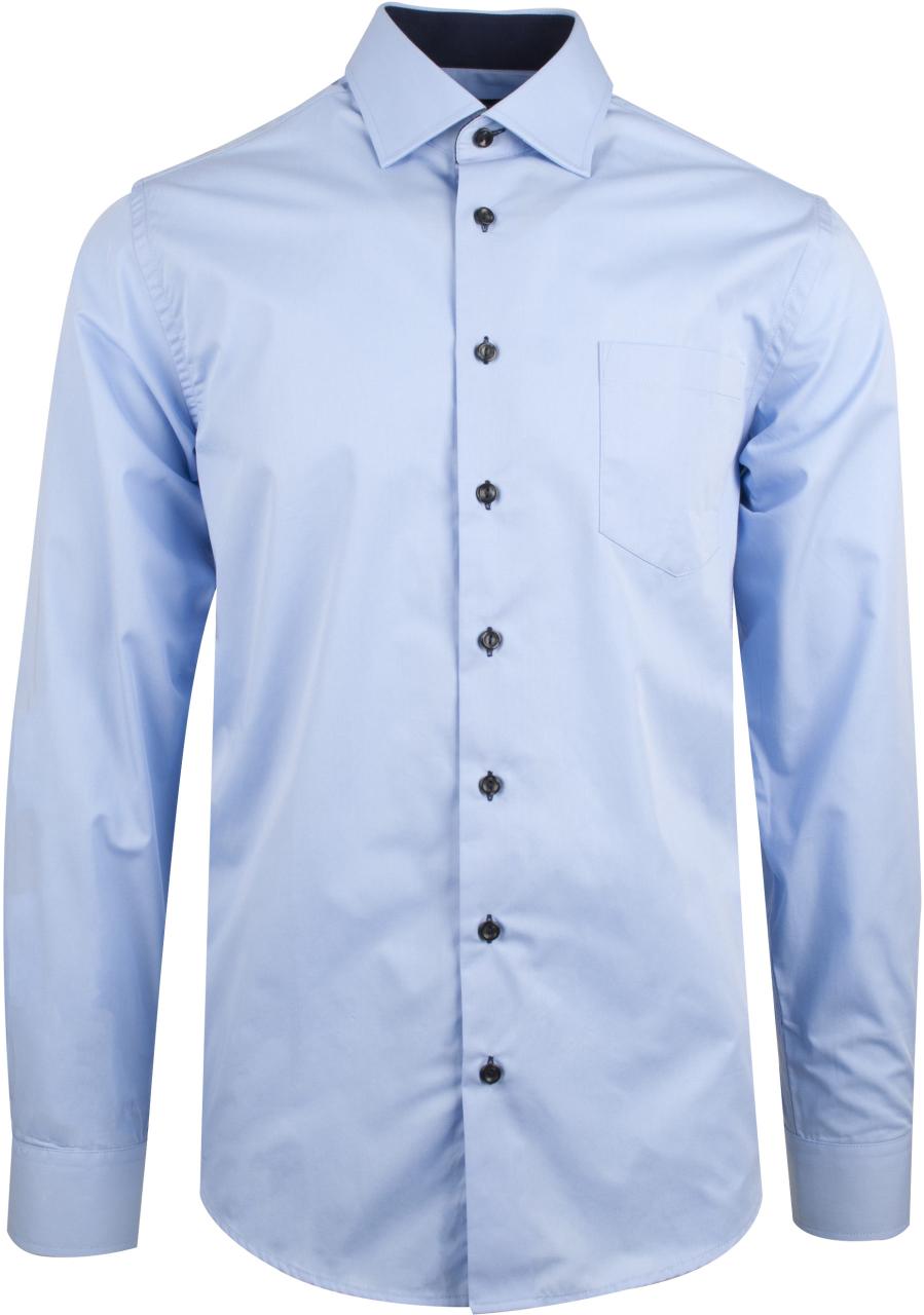 Klassisk regular-fit skjorte til herre. Kontrastfelt i krage. Brystlomme. Strykelett og rask tørk.