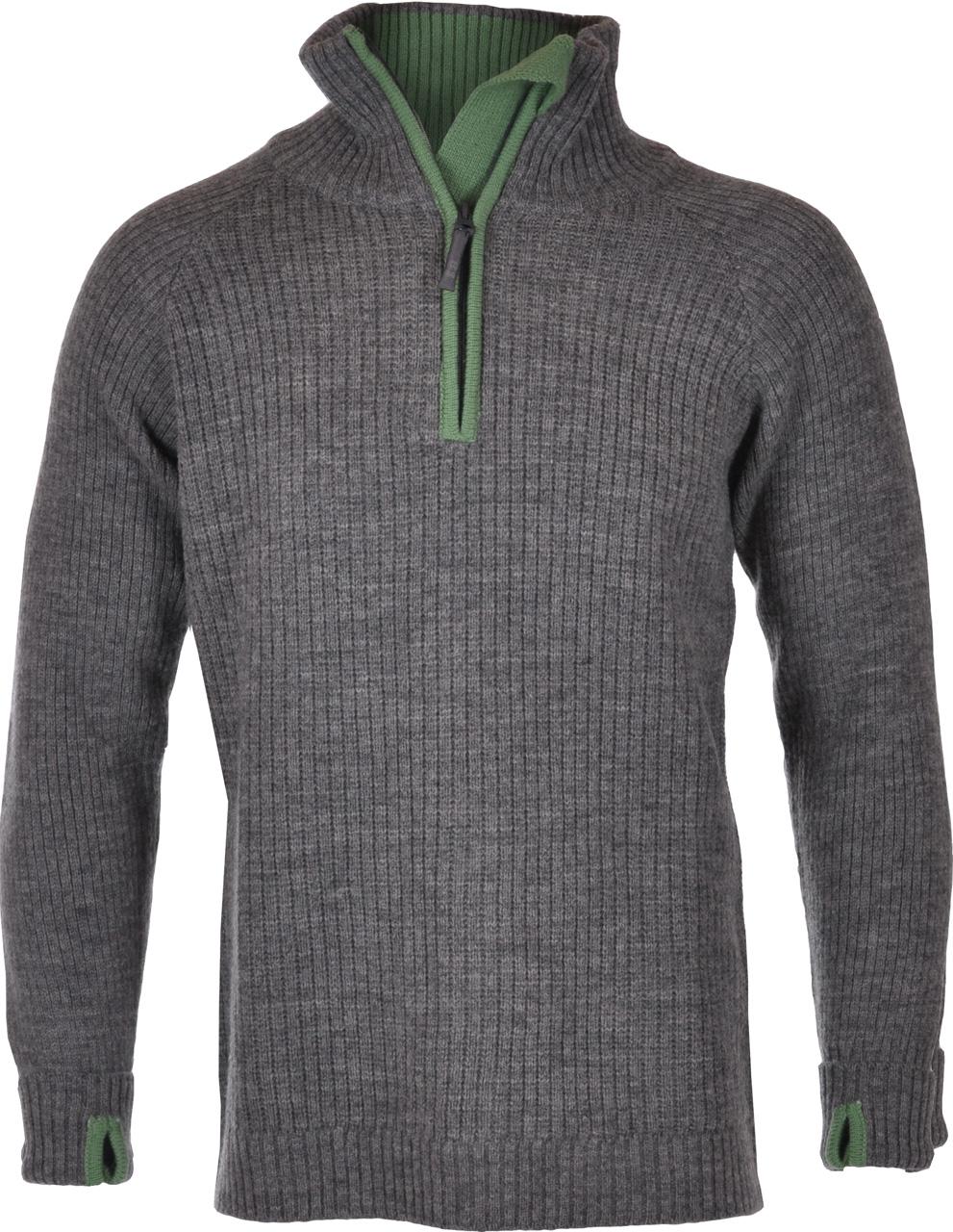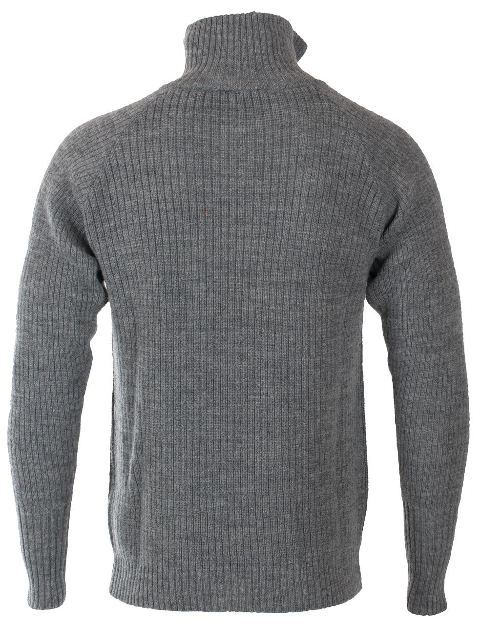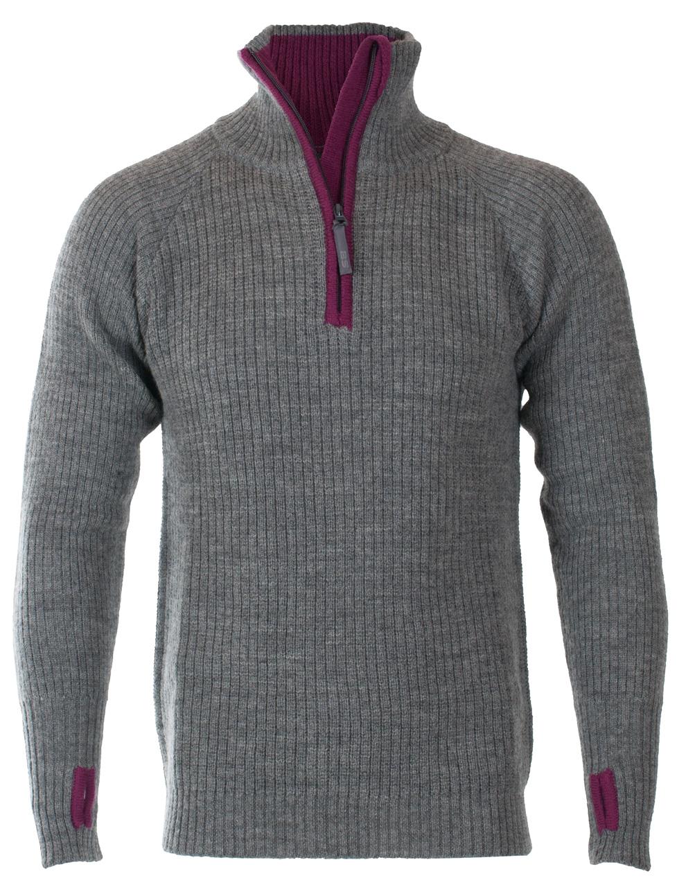 Ullgenser med krave og glidelås. Tommelhull i ermer. Kvalitet: 100% ull.