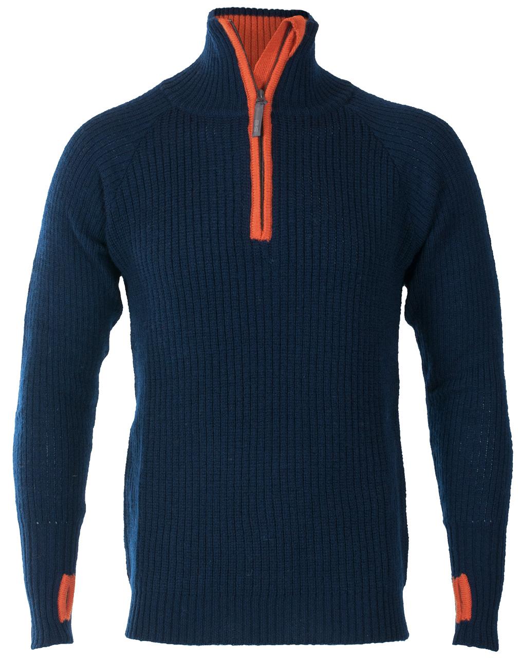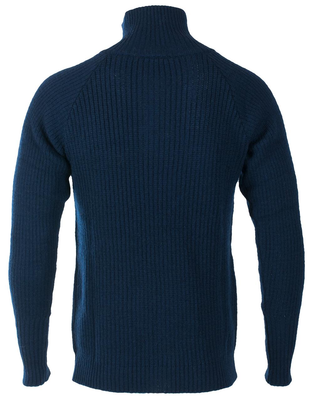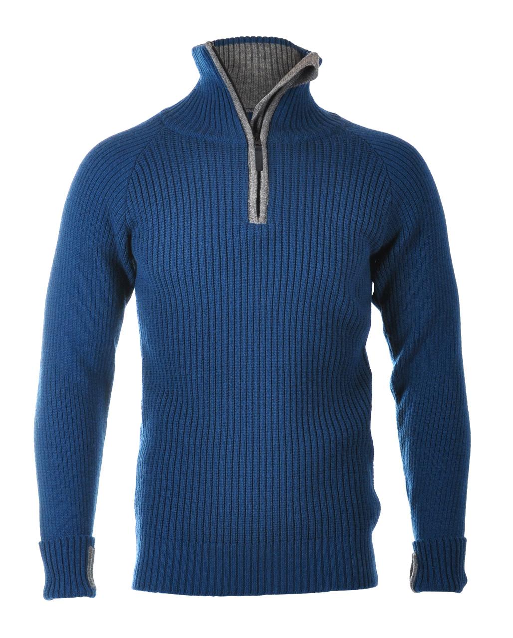 Ullgenser med krave og glidelås. Tommelhull i ermer. Kvalitet: 100% ull.