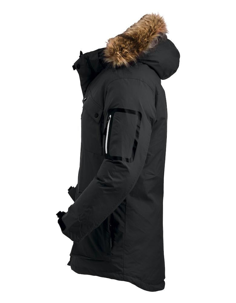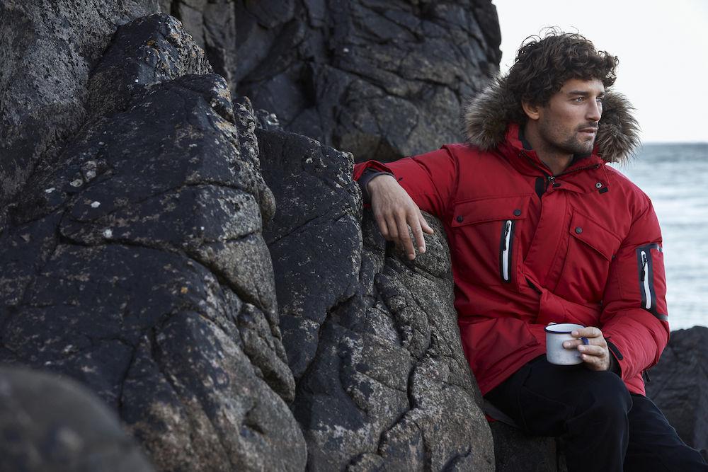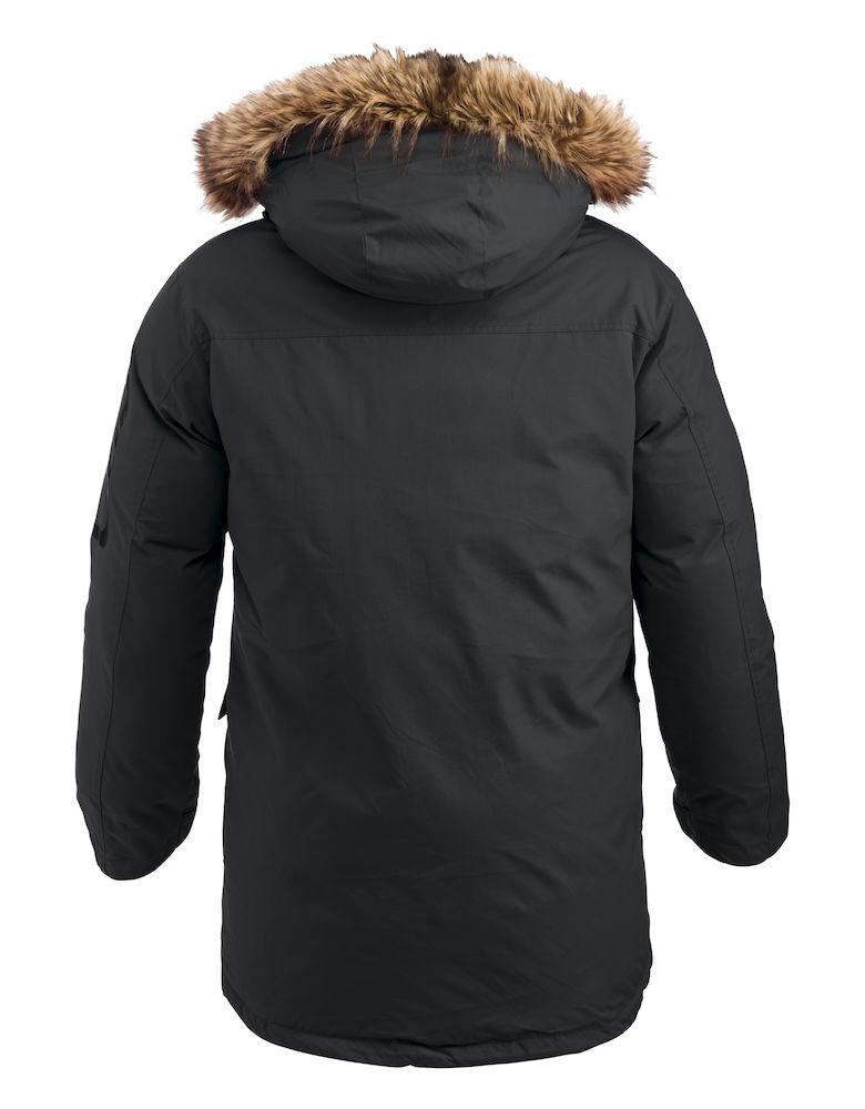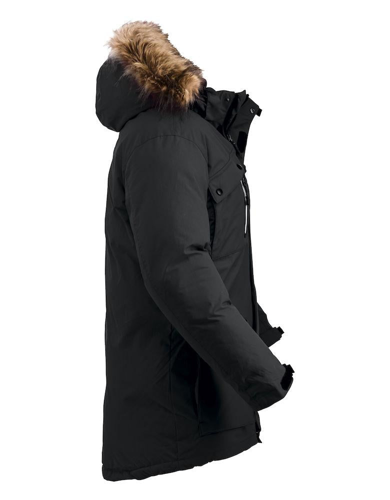 En varm unisex ekspedisjonsparkas for virkelig iskaldt vær. Innvendige mansjetter med ribb, gummiknapper, flere utvendige lommer og en avtagbar hette med avtagbar fuskepels.