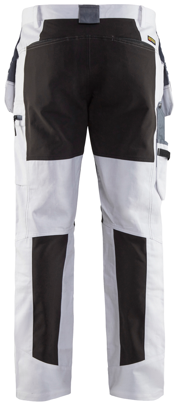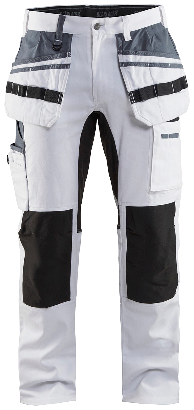 En komfortabel malerbukse med stretchpartier i skrittet, på knærene, over rumpa og bak på leggen. Spikerlommene, tomestokklomme, sparkellomme og knær er forsterket med Cordura. Buksen har gylf med plastglidelås, D-ring i linningen, forbøyde ben og smarte lommer. Den ene benlommen er spesialtilpasset for sparkel og kost. Den andre har belg, glidelås, blyantlomme og plass for kniv. I tillegg har buksen baklommer, innstikklommer, knebeskyttelseslommer og innvendig telefonomme.