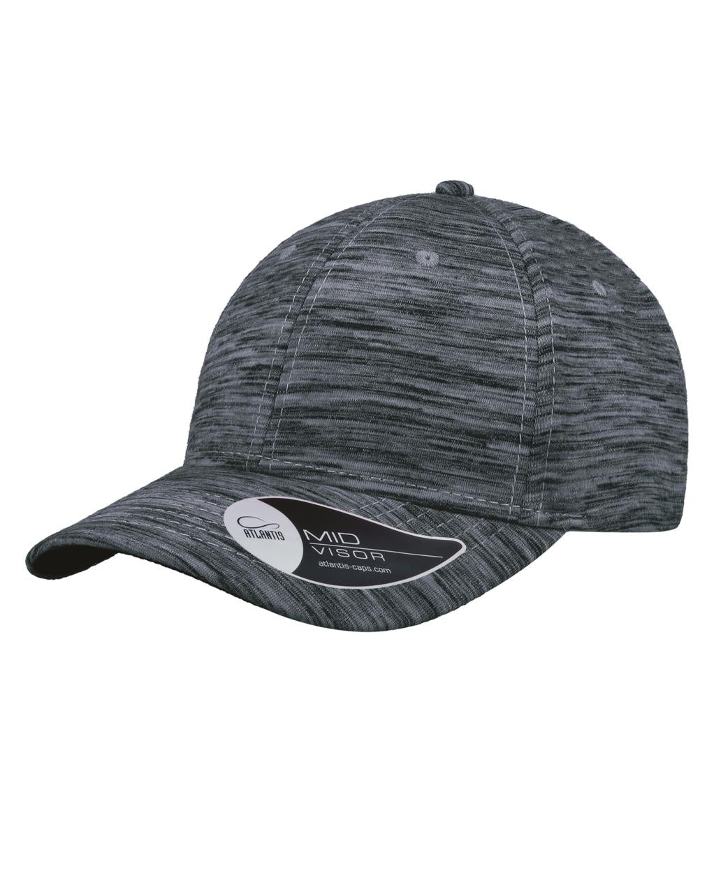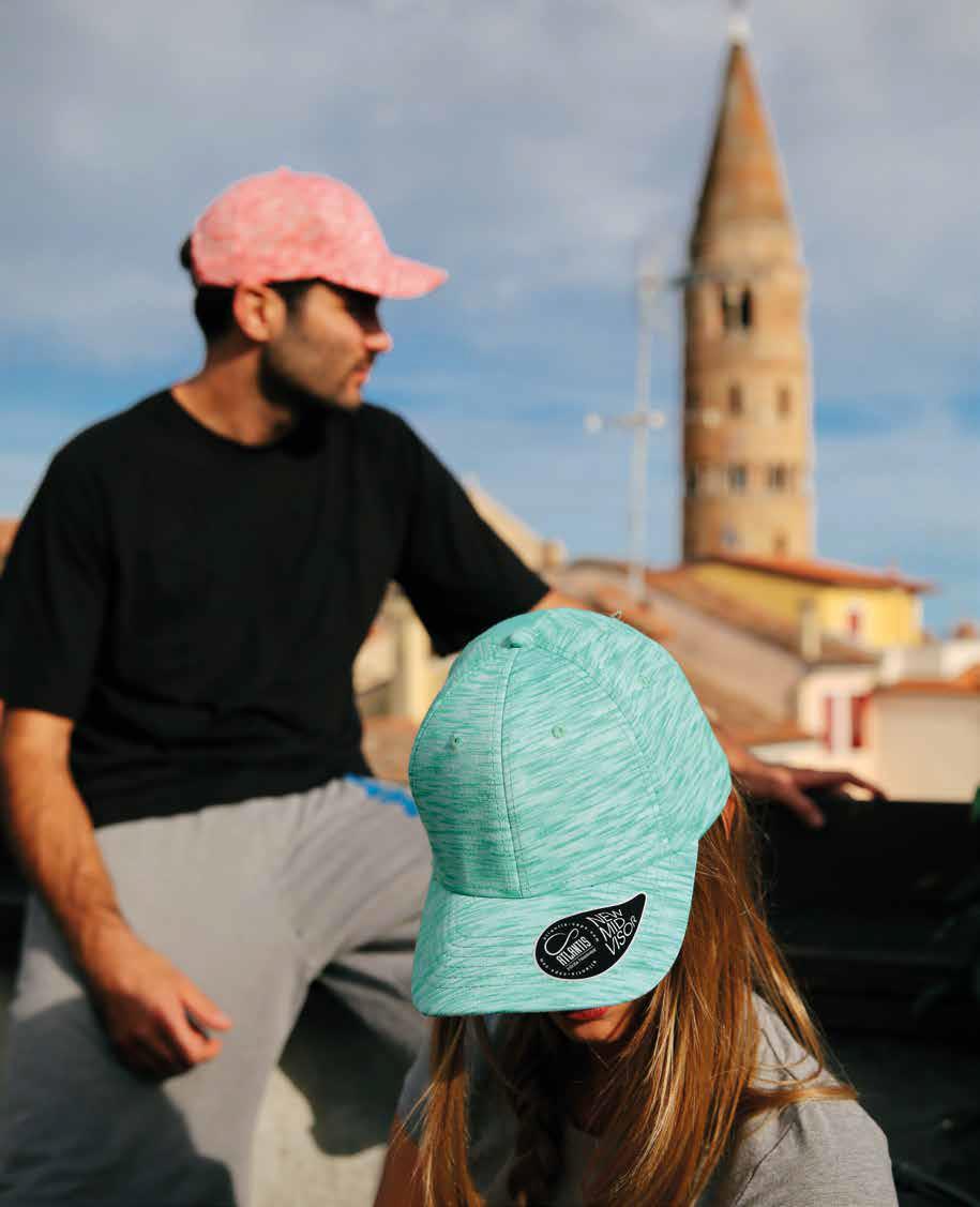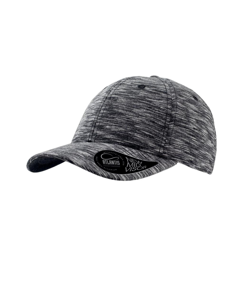 Melert cap med 6 paneler. Figursydd og lett buet brem. Medium profil. Regulerbar PVC-lukning. (snap back) Tear away label.
