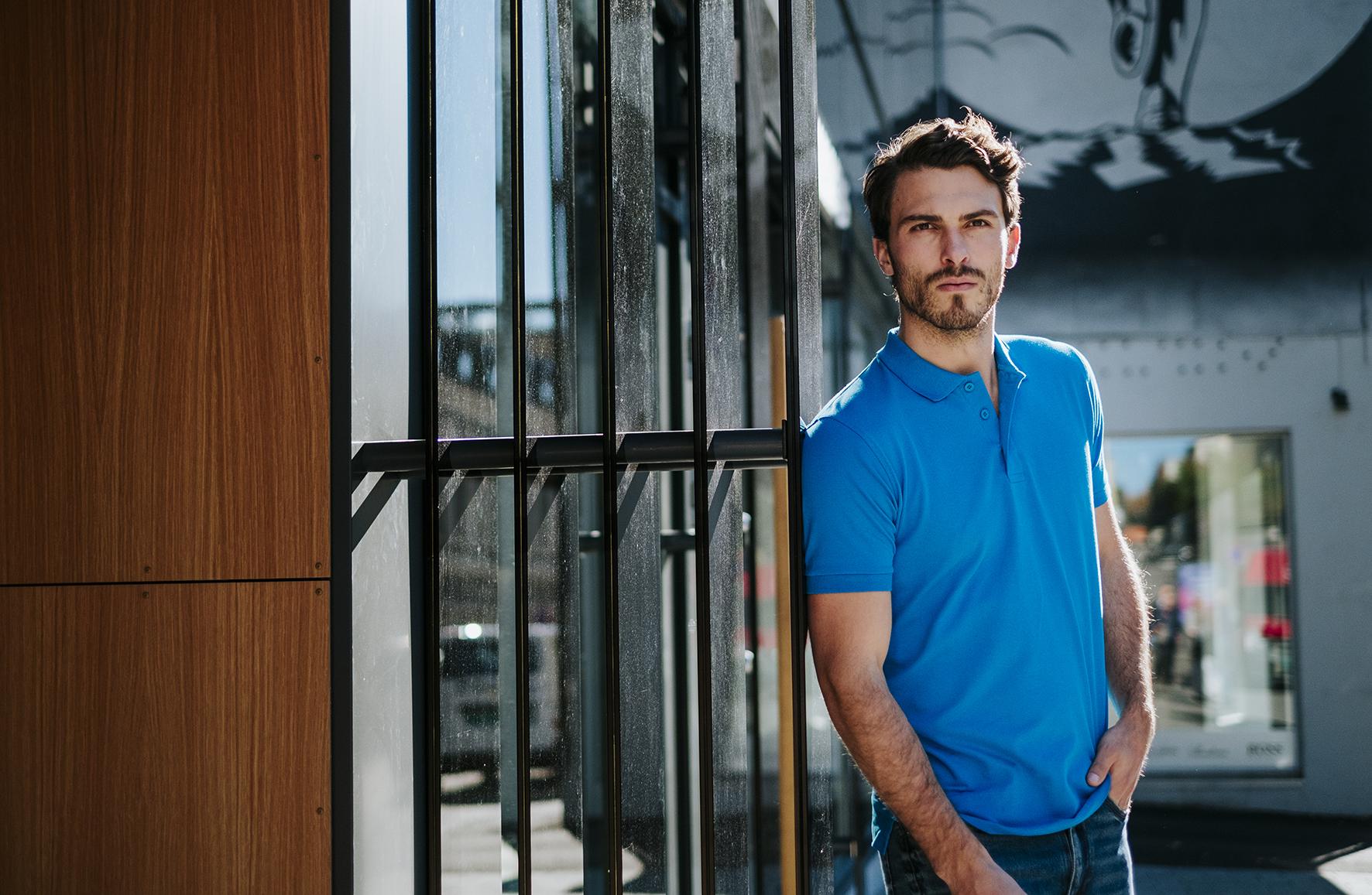 Premium stretchpolo til herre. Ribdetaljer på krage og ermer og sidesplitt.