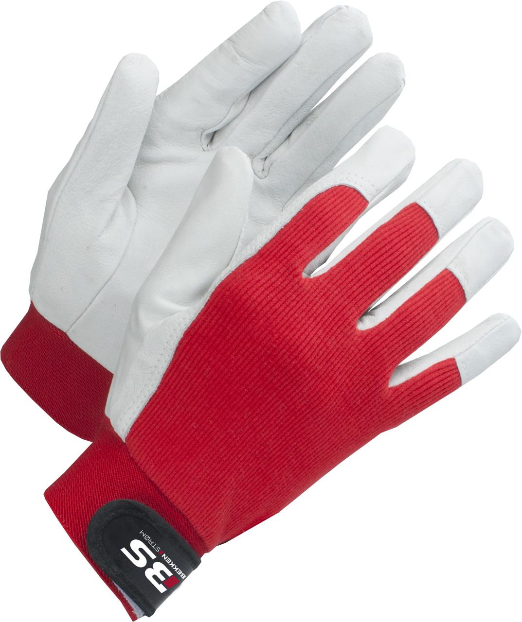 • Med elastikk i håndbak og borrelåslukking rundt håndledd.