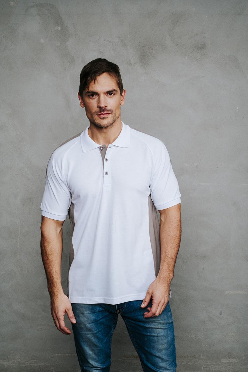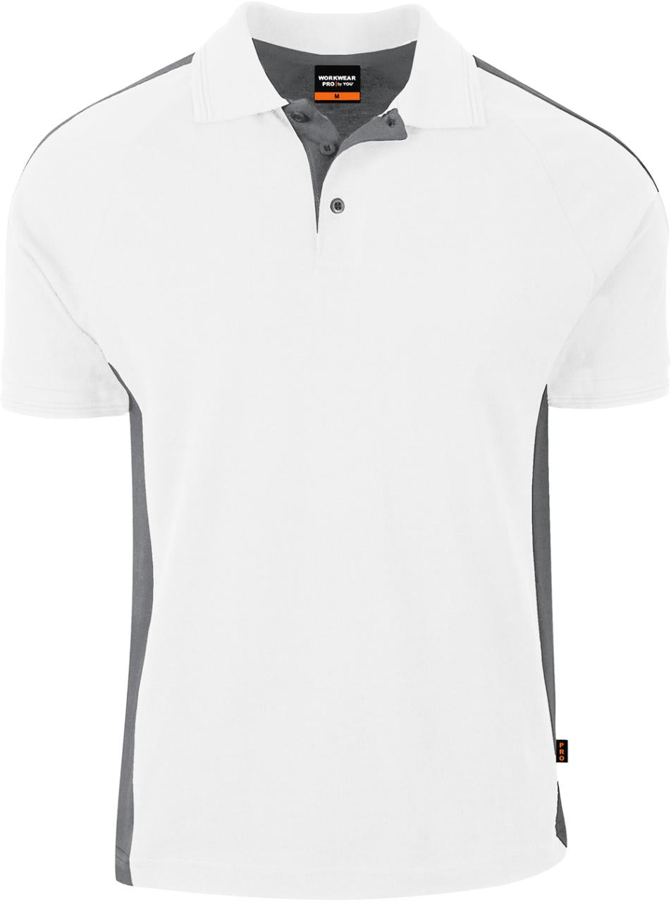 Ekstremt slitesterk tofarget unisex PRO polo. Ton i ton knapper og sidesplitt. Tåler hard industriell vask og tørk. (farget: 60 grader, hvit: 85 grader)