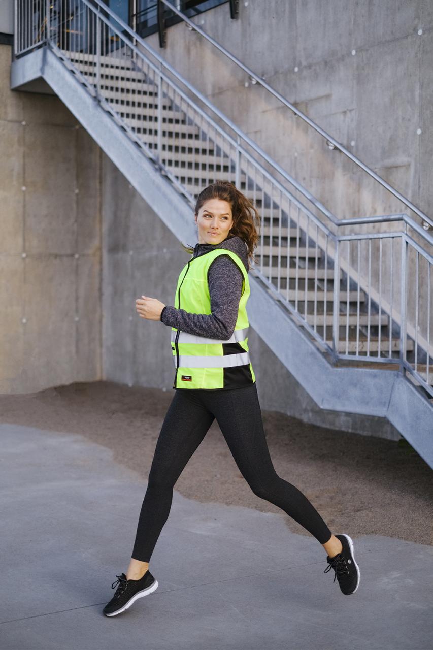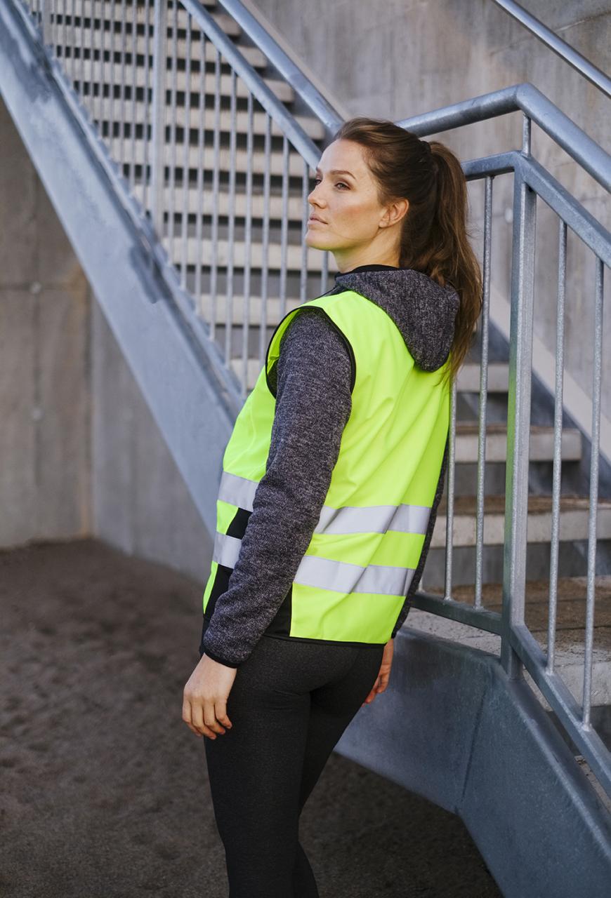 Unisex treningsvest med påsydde reflekser rundt midjen. Lett fasongsydd. Praktisk sidelomme med glidelåslukning. Glidelås i front. Meshpanel i sidene for god ventilasjon.