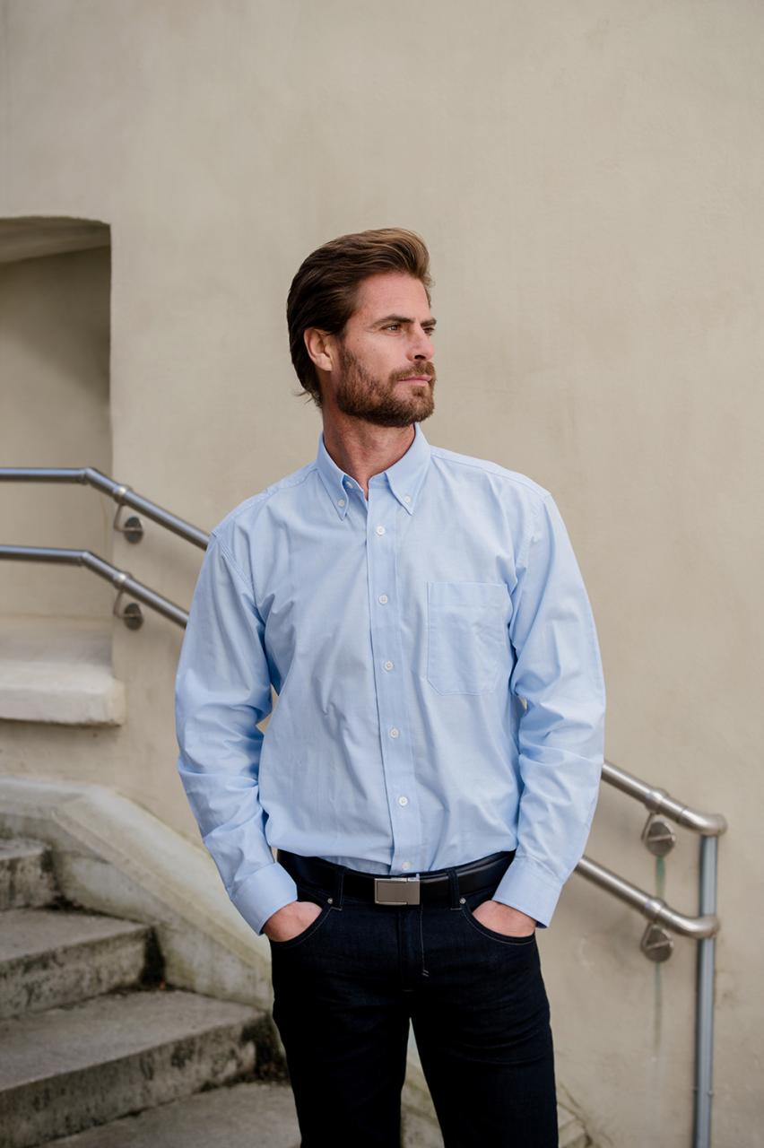 Klassisk Oxford skjorte til herre. Lange ermer, button-downkrage og brystlomme. Regulerbare mansjetter. Romslig i størrelsen. Matcher 8501 Oxford dameskjorte.