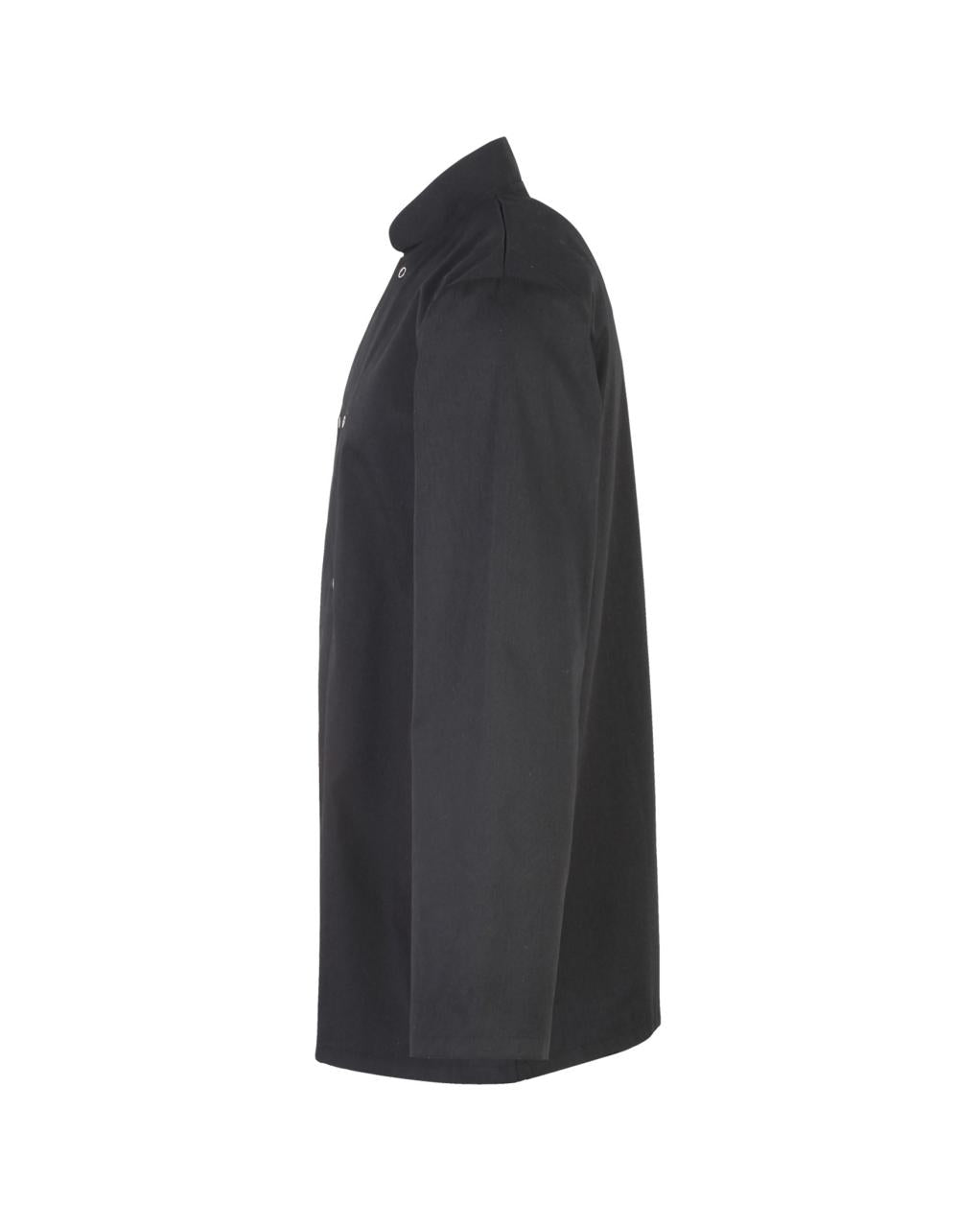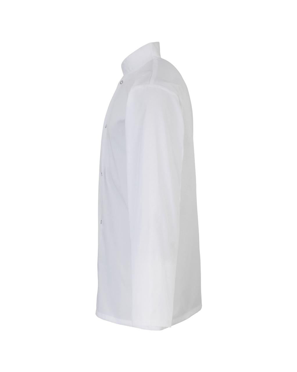Solid langermet kokkejakke med trykknappfeste i front. Unisexmodell med kinakrage i myk og komfortabel utførelse. Et populært valg for kjøkkenpersonalet. Tåler industriell vask og tørk.