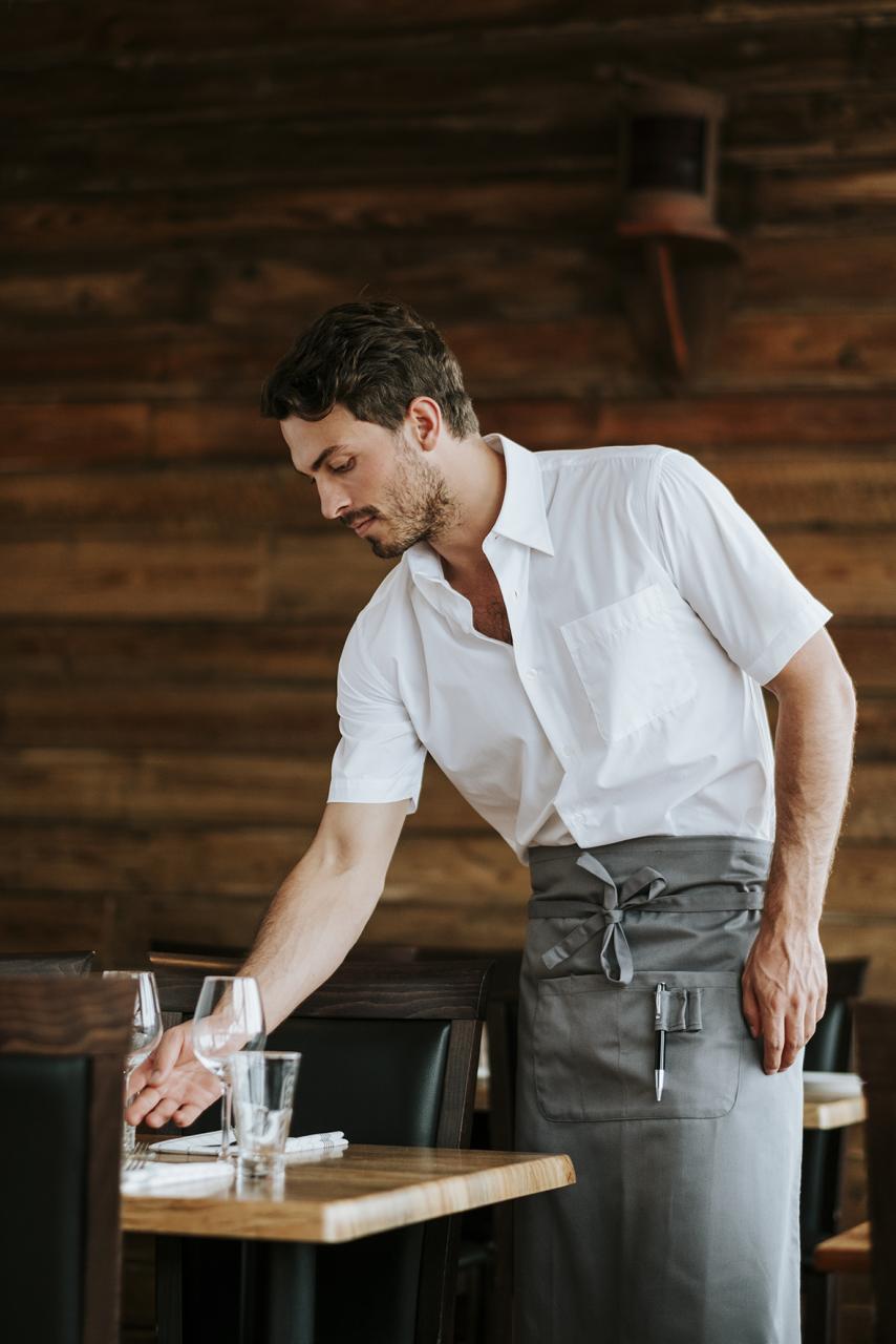 Langt slitesterkt forstykke med midtlommer, pennelomme og nøkkelring. 110 x 100 cm.