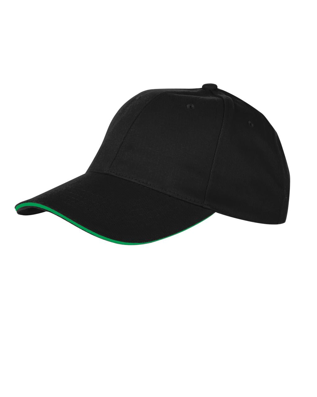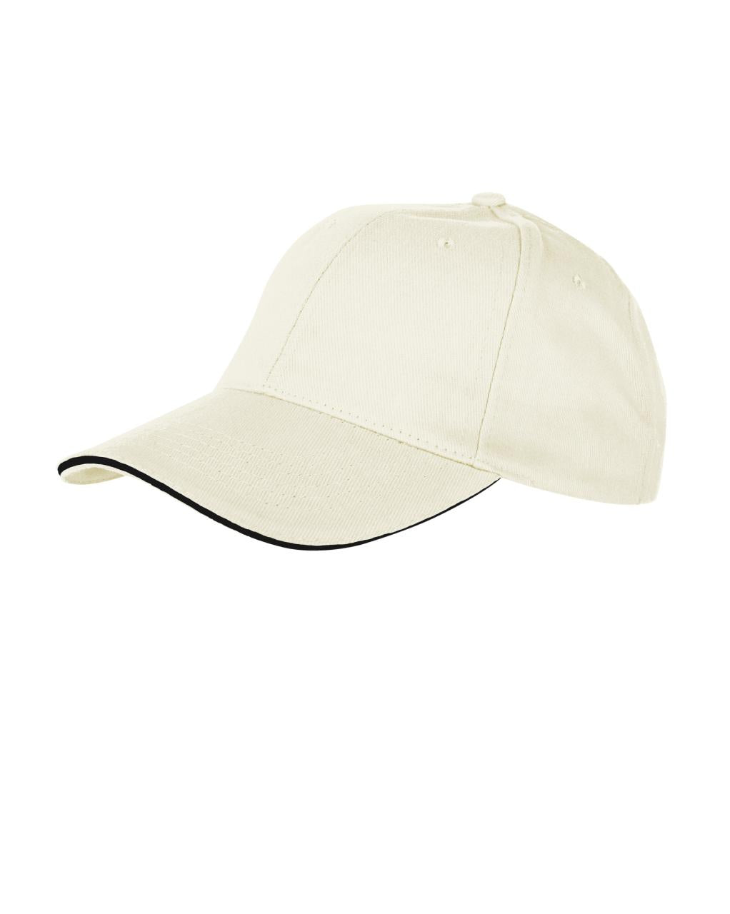 Fasongsydd twillcaps med 6 paneler og kontrastpiping i brem. Regulerbar lukning med metallspenne.