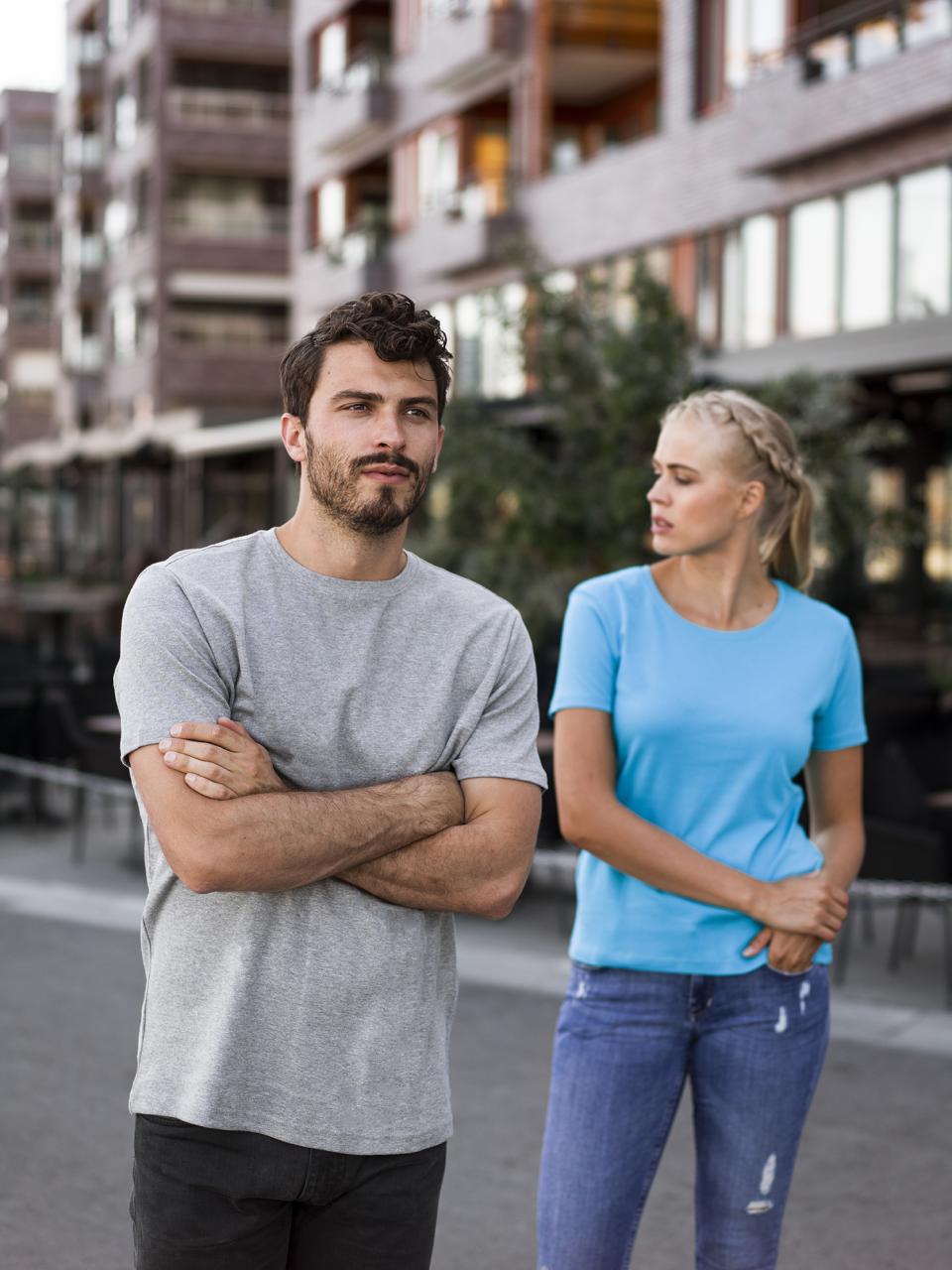 Interlock t-skjorte med rund hals til herre. Forhåndskrympet og fasongsydd.