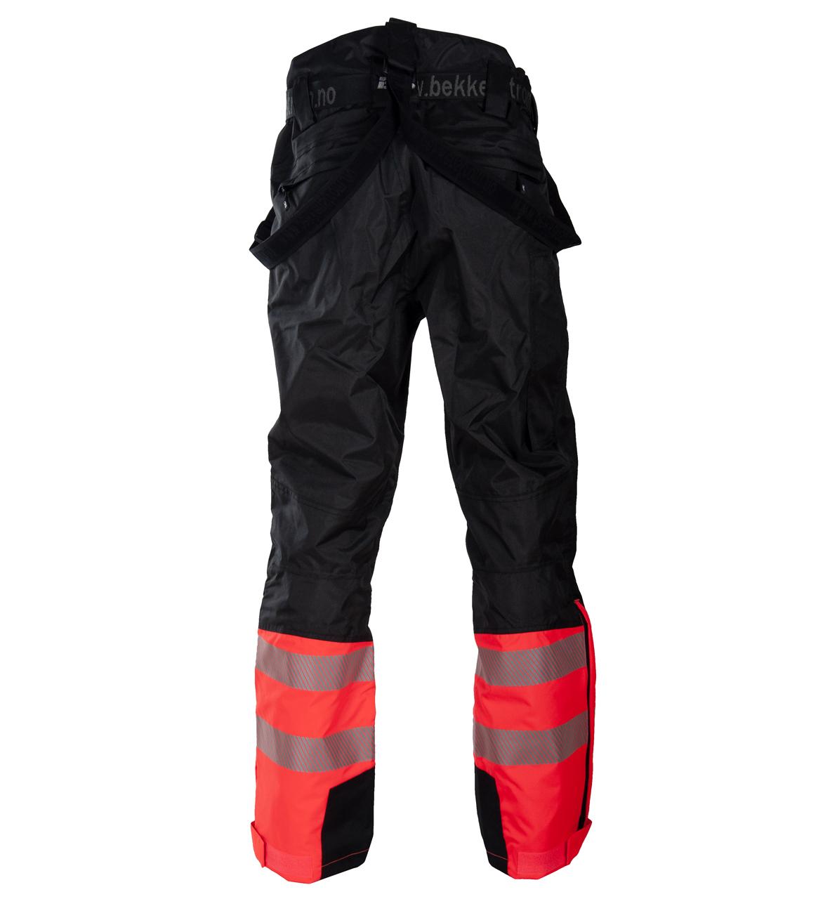 Bukse med avtagbare seler og belte. Meshfòr. To stikklommer og to baklommer. Tommestokklomme. Innvendig knelomme. Glidelås med klaff i bein. Snøstopper. Refleks på bein.