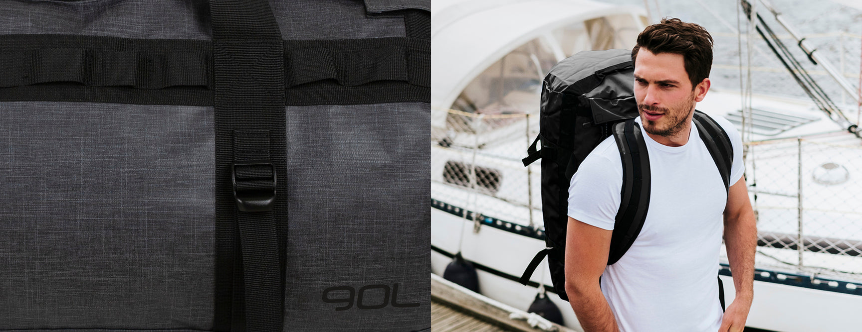 Ekstra stor duffelbag med stort hovedrom med glidelås i lokk. Kan enkelt gjøres om til backpack for optimal bærekomfort. Skjulte bæreremmer til backpack. ID-lomme. Vannavvisende glidelås i lokk.