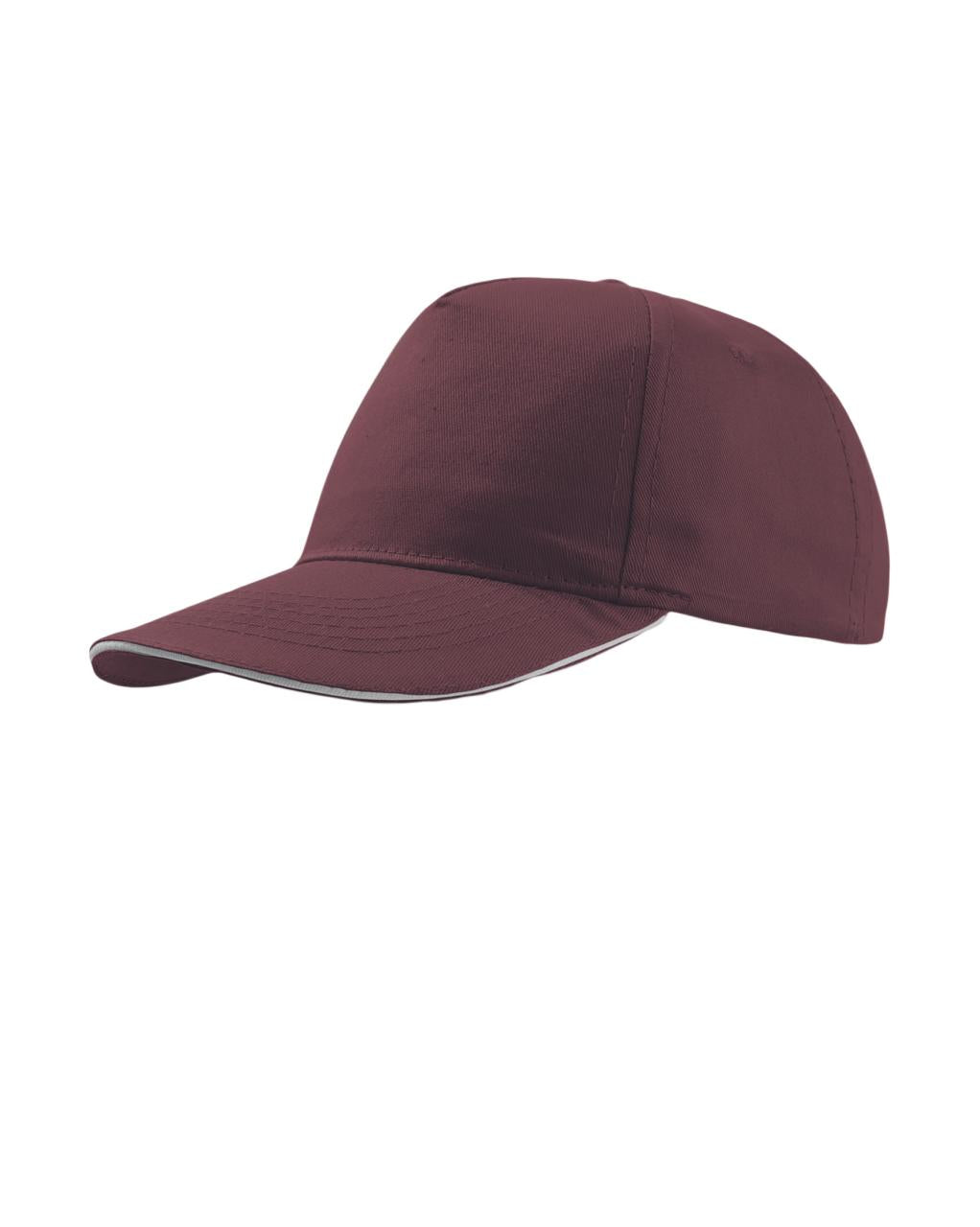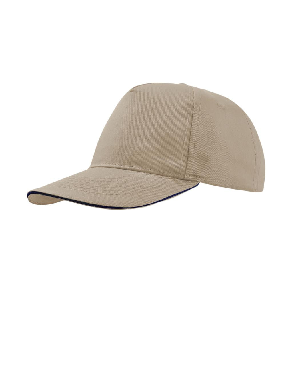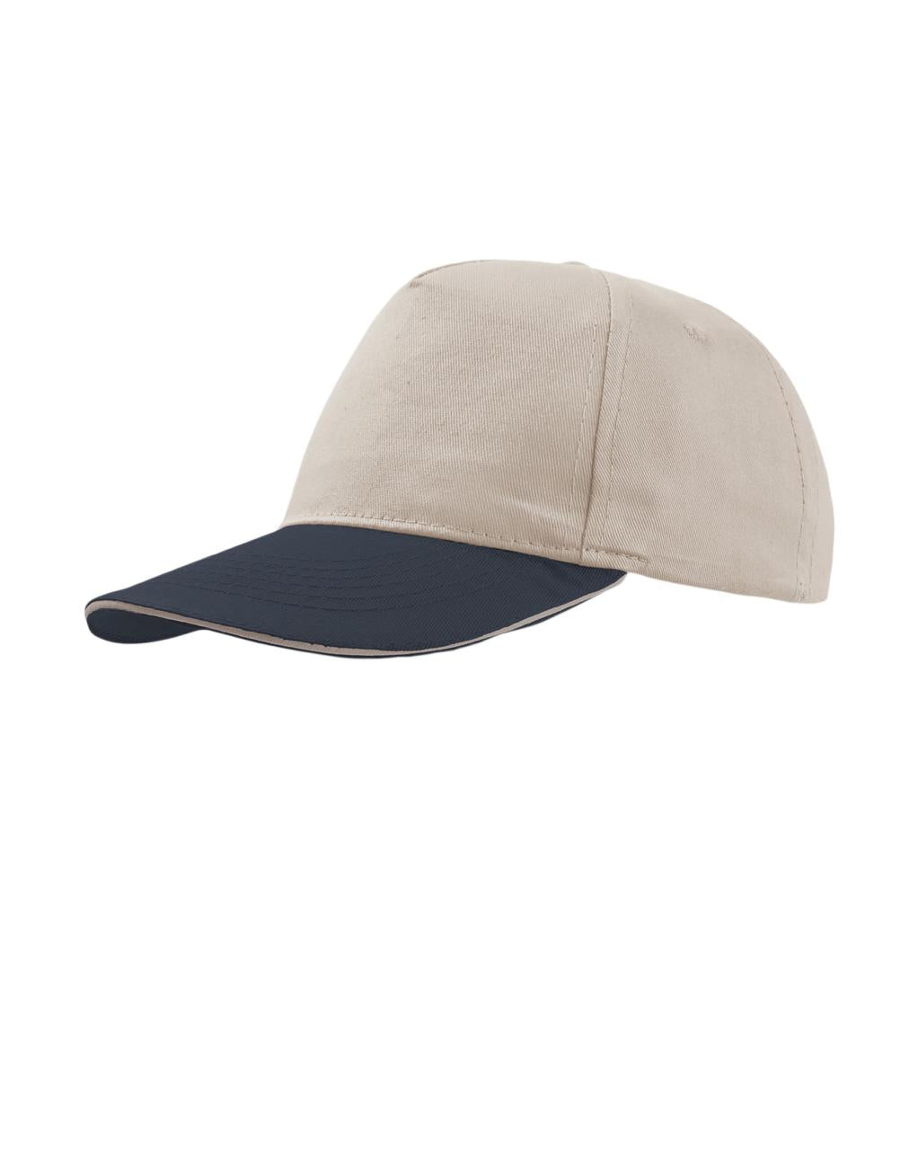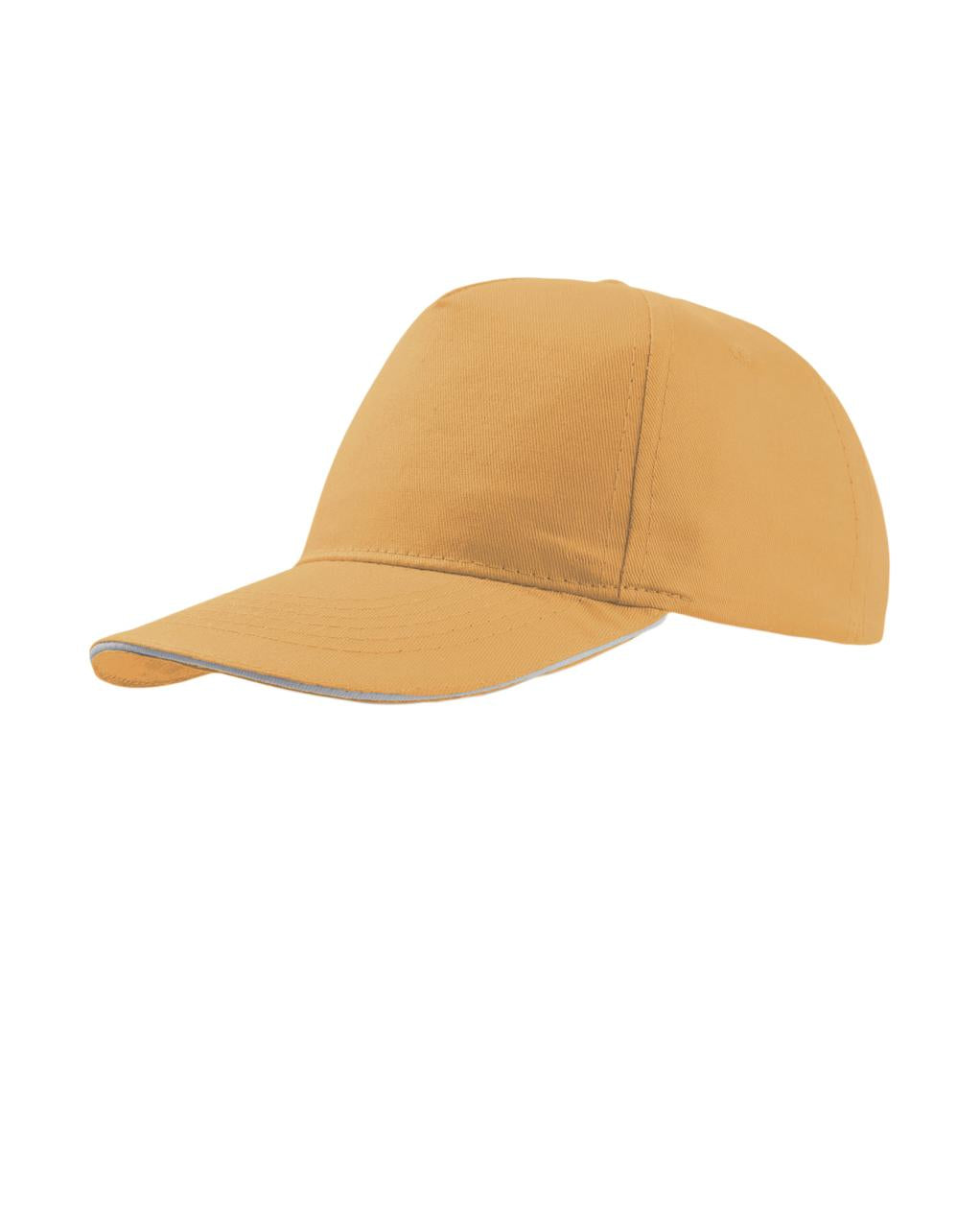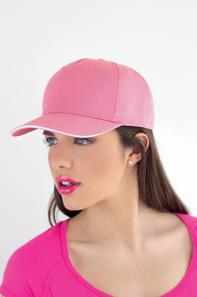 Baseballcap i bomull med 5 paneler og konstrast i brem. Figursydd med buet brem. Høy profil. Velcro lukning.