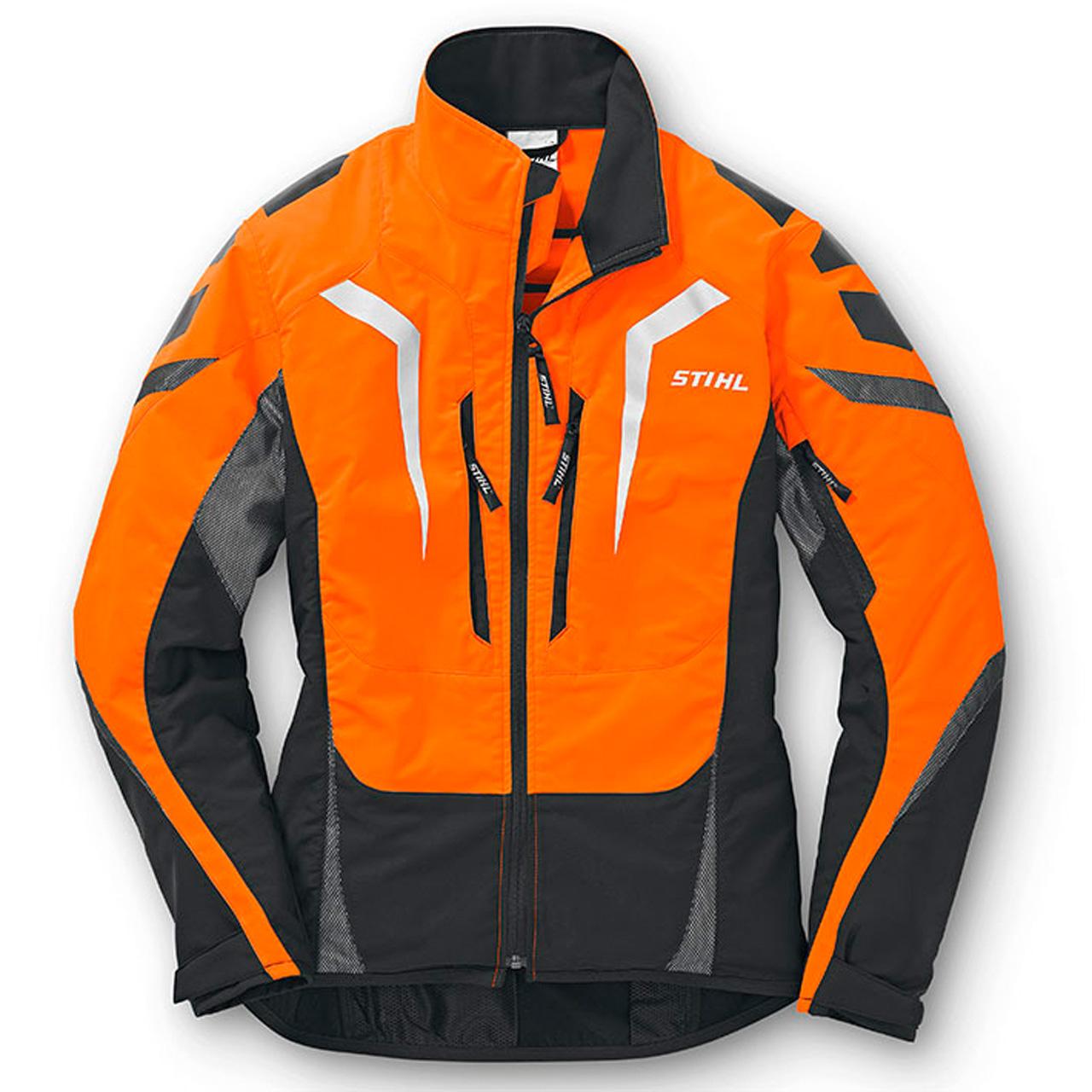 ADVANCE X-VENT jakke Generell infoTekniske dataUtstyrDokumenter Lett og meget pustende skogsarbeidsjakke, spesielt egnet for sommertemperaturer eller høy fysisk aktivitet. Jakken er i varselfargen oransje og svart. Sølvfarget nettfór i ryggen, under armene og i lommene gir optimal ventilasjon. Materialet i jakken er vann- og smussavvisende. Jakken har dessuten høy andel med oransje varselfarge, refleksdetaljer, to brystlommer og i tillegg til rygg-, arm- og innerlomme. Slitasjebeskyttelse på skuldrene og stor STIHL logo på ryggen.