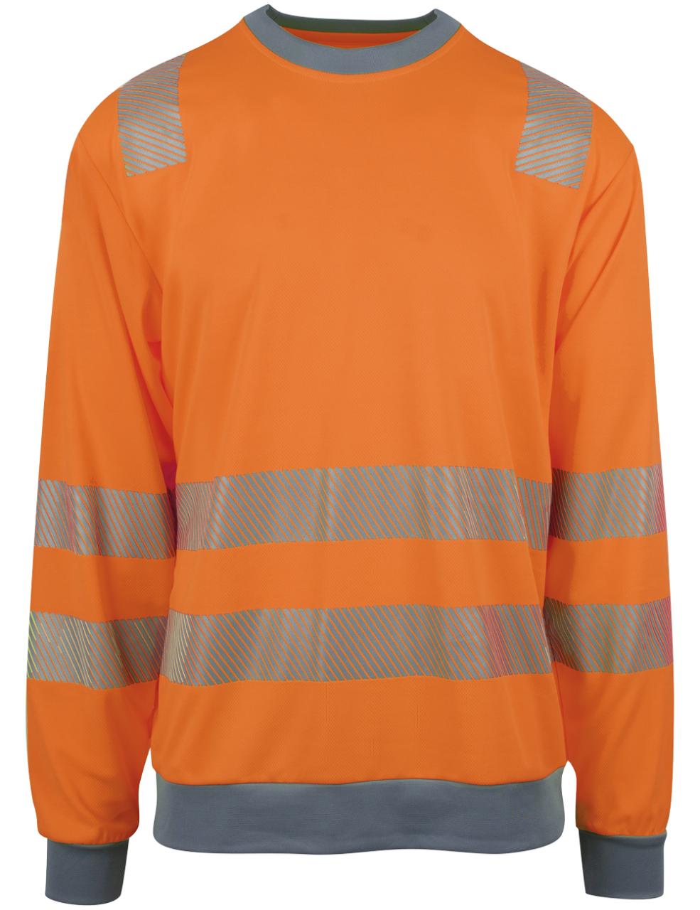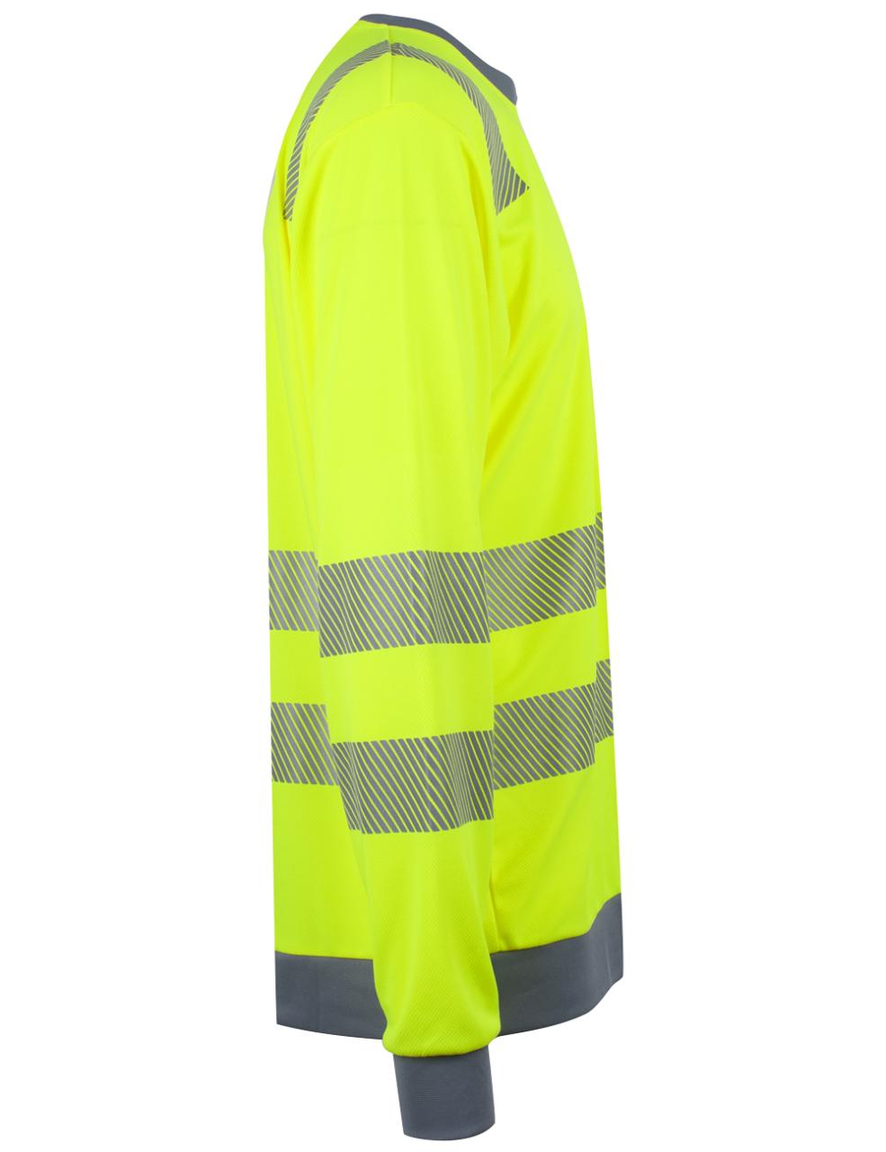 Unisex HI-VI langermet t-skjorte. Elastiske reflekser over skuldre, rundt ermer og midje. Kontrastfarget og elastisk ribb i hals, ermer og liv.