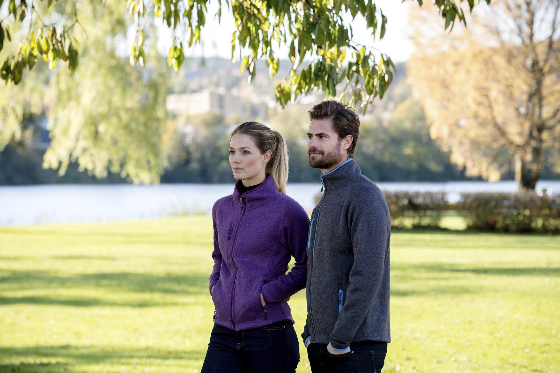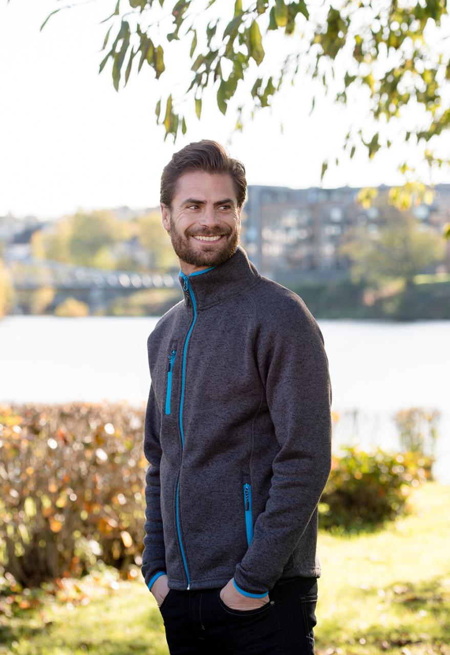Lett figursydd unisex strikket jakke. Dekorative flatlocksømmer og kontrastdetaljer. Raglanermer. Praktiske stikklommer med glidelås i front og brystlomme med glidelås. YKK glidelås. Regulerbar linning. Antipill - behandlet.
