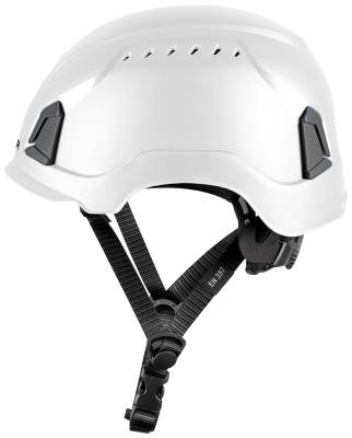 - Leveres med to forskjellige firepunkts hakestropper, slik at du kan bytte mellom EN 397 (bygg/industri) og EN 12492 (klatrehjelm).