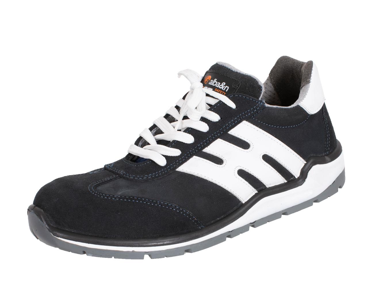 Vernesko i semsket lær og tekstil 3-D funksjonsfôr som gir god ventilasjon og transport av fuktighet. Vernetå i kompositt og spikertrampsåle i Kevlar. Metallfri. Anatomisk og antistatisk innersåle. Mellomsåle og yttersåle i 3-farget PU/PU/TPU. Farge: marine med hvite og grå detaljer. Vekt: 540 gram pr sko i str 42 Sertifisering: ISO 20345:2011 S1P SRC