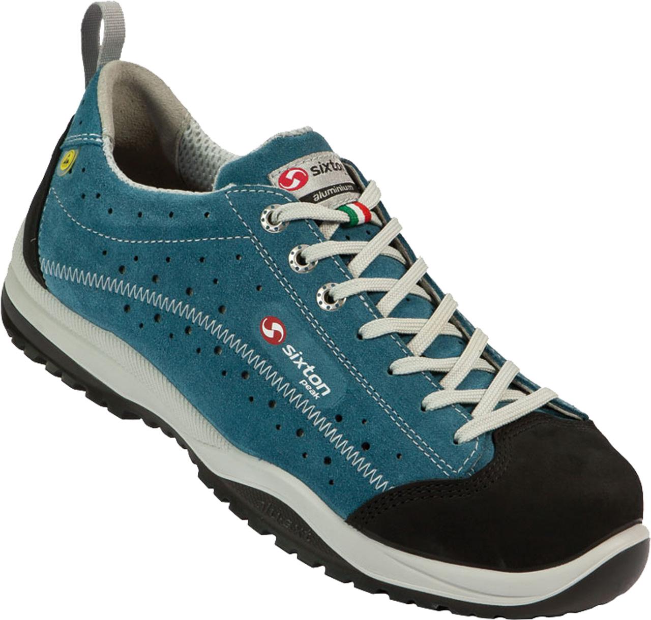 Vernesko spesialbehandlet semsket Nubuk lær. Vernetå i aluminium og spikertrampsåle i tekstil. 3D-innerfòr for ekstra god ventilasjon og fukttransport. Mellom- og yttersåle i to-komponent PU for god demping og slitestyrke. Farge: Blå med detaljer i Sort/Grå. Vekt pr par str 42: 1082 gram Godkjenning: EN ISO 20345:2011 S1P ESD SRC