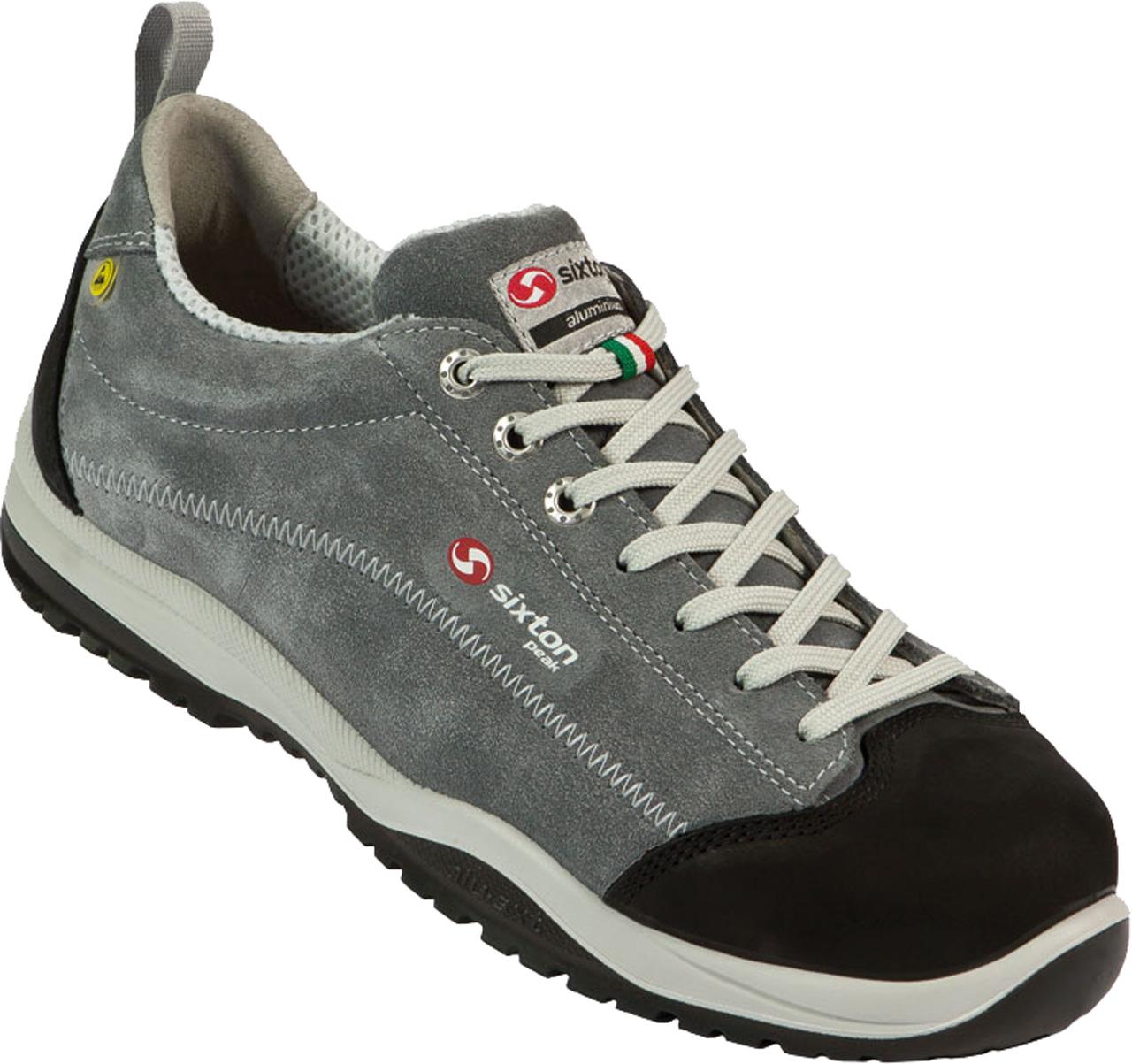Vernesko spesialbehandlet semsket Nubuk lær. Vernetå i aluminium og spikertrampsåle i tekstil. 3D-innerfòr for ekstra god ventilasjon og fukttransport. Mellom- og yttersåle i to-komponent PU for god demping og slitestyrke. Farge: Grå med detaljer i Sort. Vekt pr par str 42: 1082 gram Godkjenning: EN ISO 20345:2011 S3 ESD SR